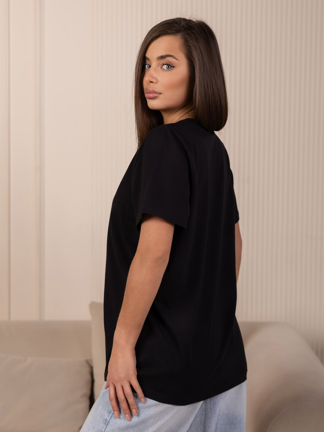 Хлопковая футболка черного цвета - идеальный выбор для стильных и смелых! Сочетание классического дизайна с использованием высококачественных материалов делает эту модель незаменимой в гардеробе каждого модника и модницы.