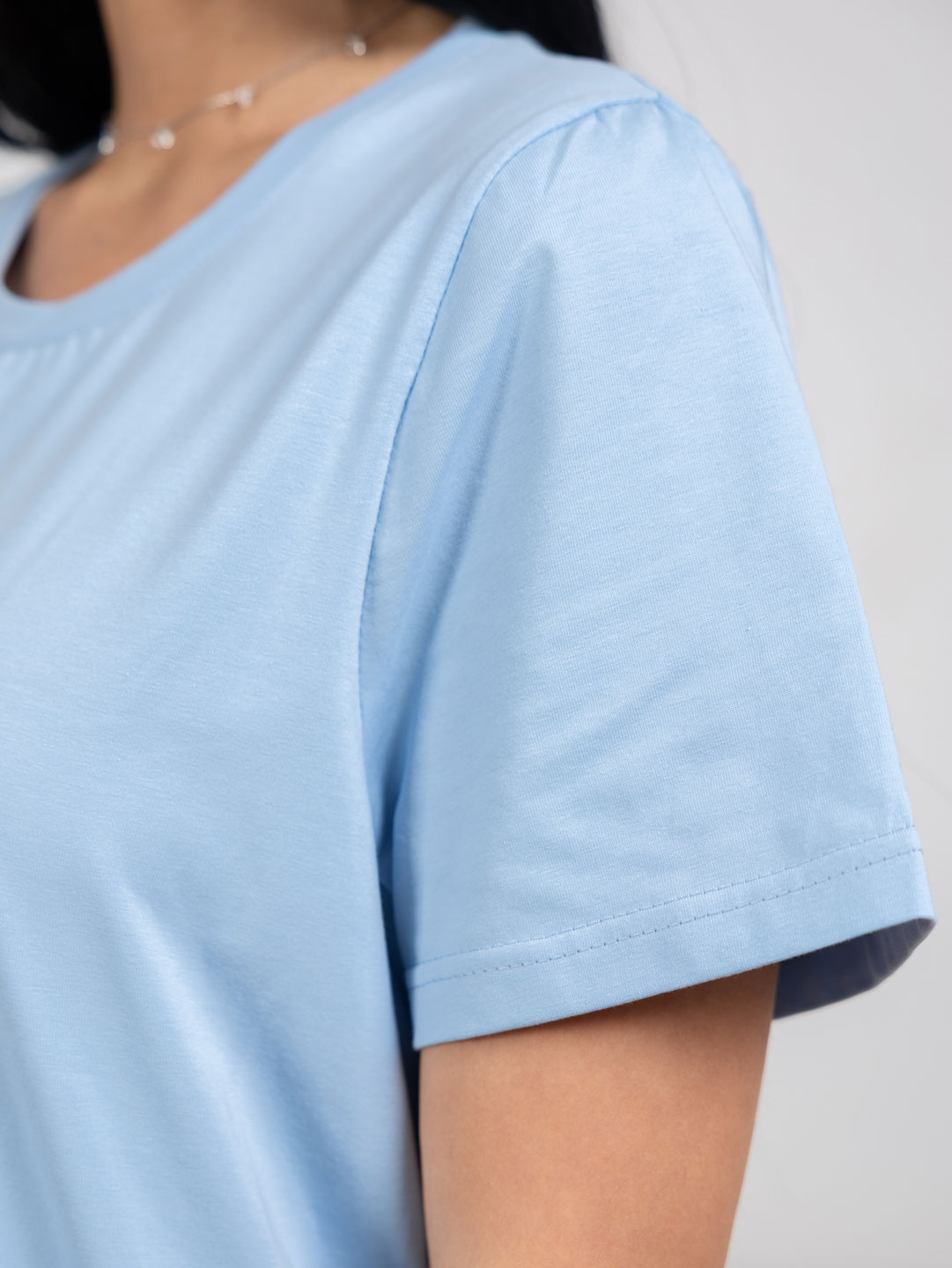 Женская базовая футболка трендового оттенка, с втачным рукавом, О-образной горловиной, длиной до середины бедра.