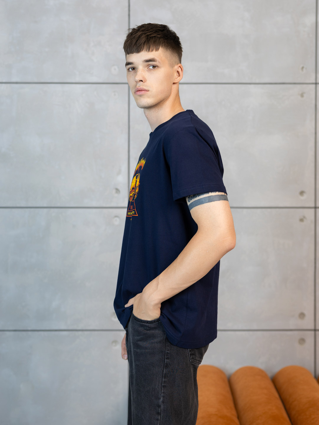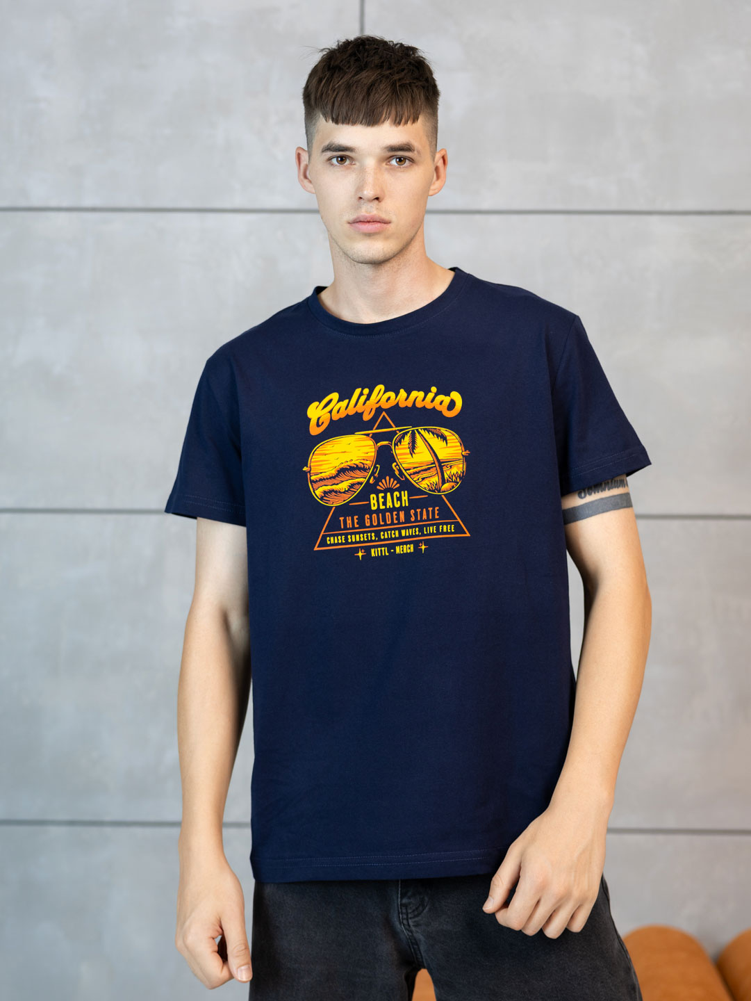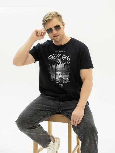 Футболка мужская с коротким втачным рукавом и удобной округлой горловиной. На передней части печатный рисунок.