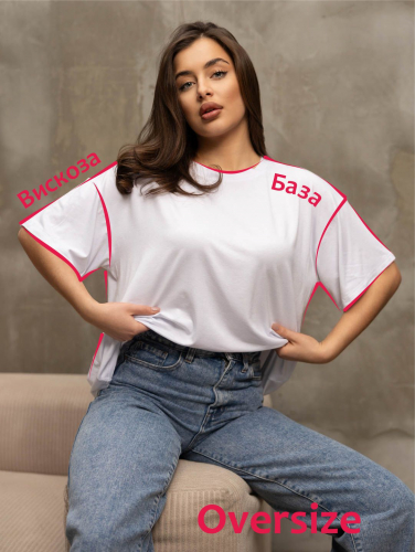 Базовая белая футболка из качественной вискозы, спущенная линия плеча, О-образная горловина, модный силуэт оверсайз. То что нужно в качестве базы под пиджак, кардиган, бомбер.