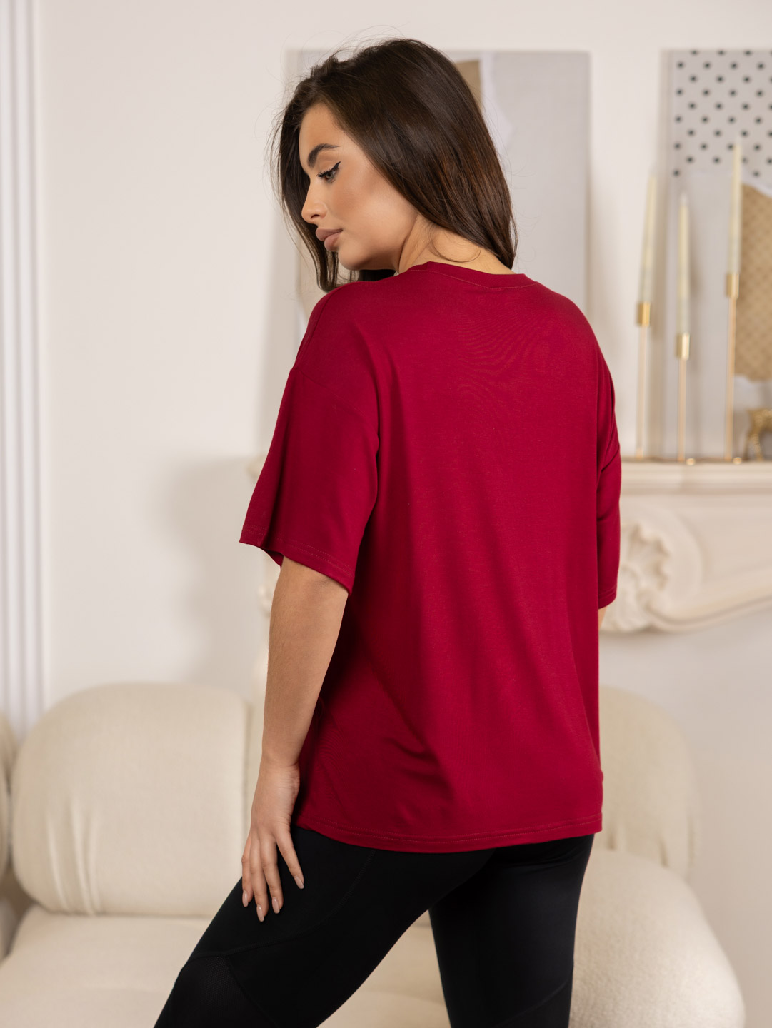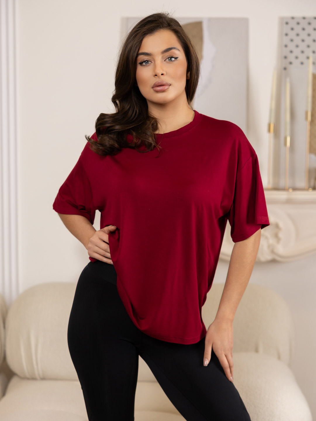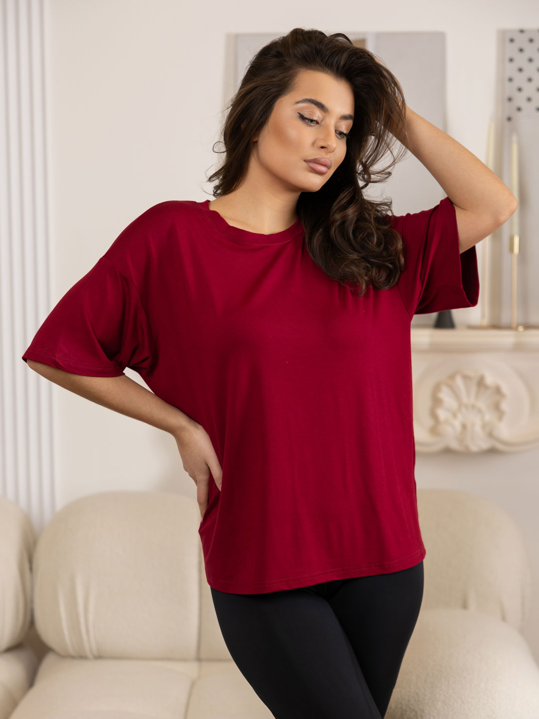 Базовая черная футболка из качественной вискозы, спущенная линия плеча, О-образная горловина, модный силуэт оверсайз. То что нужно в качестве базы под пиджак, кардиган, бомбер.