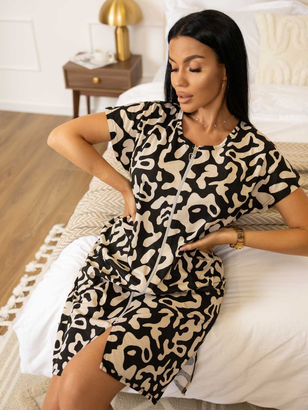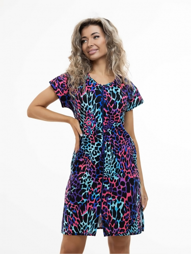Домашний халат из хлопка, с коротким рукавом и разрезами. Универсальная расцветка подойдет для любой возрастной группы.