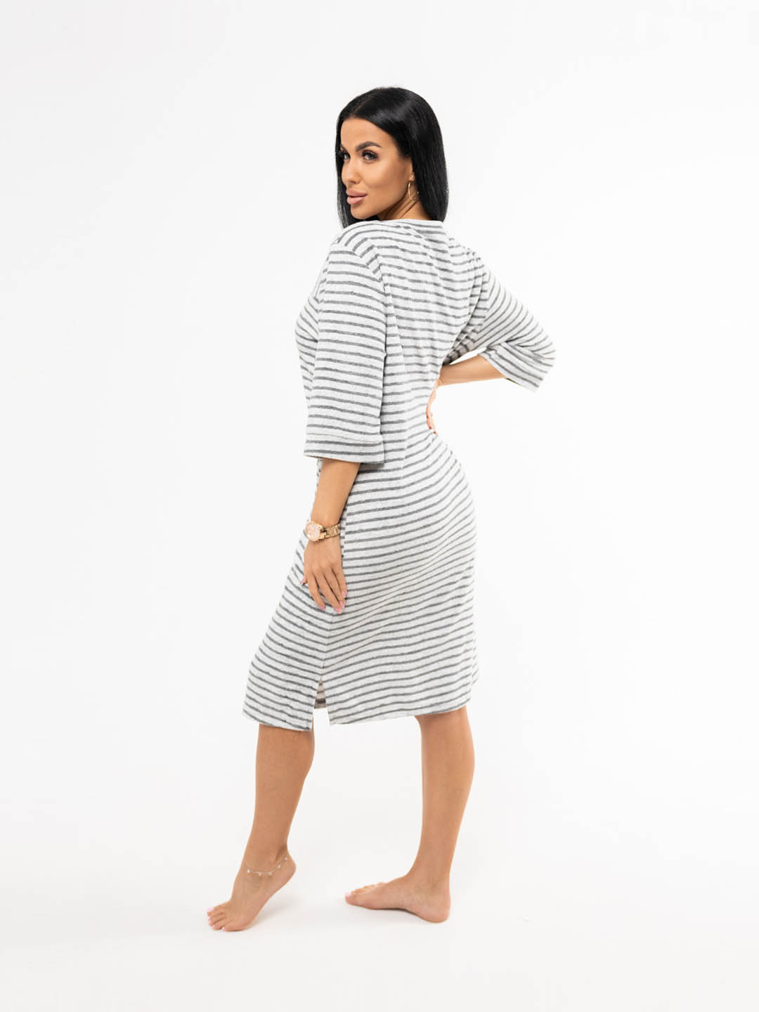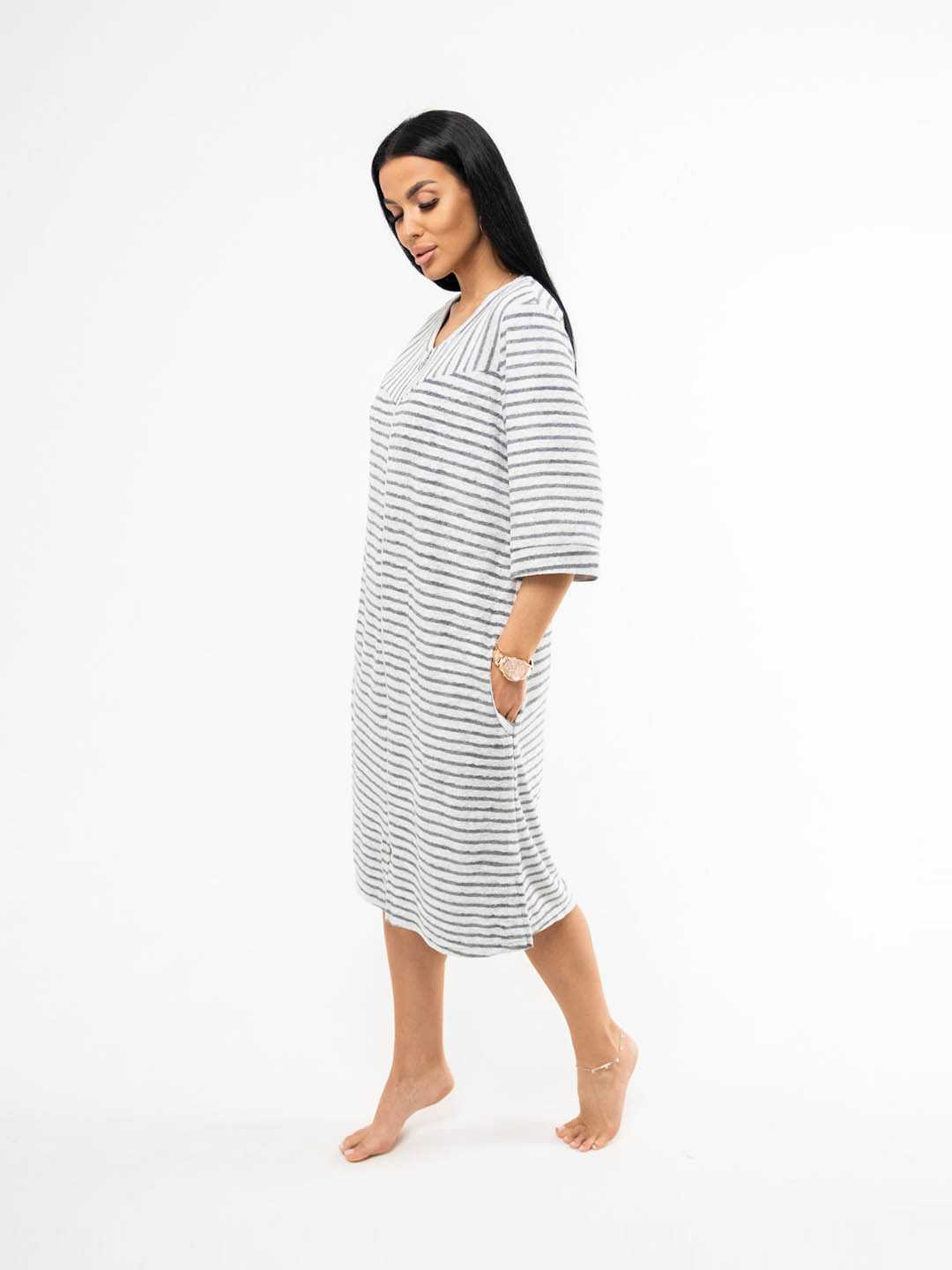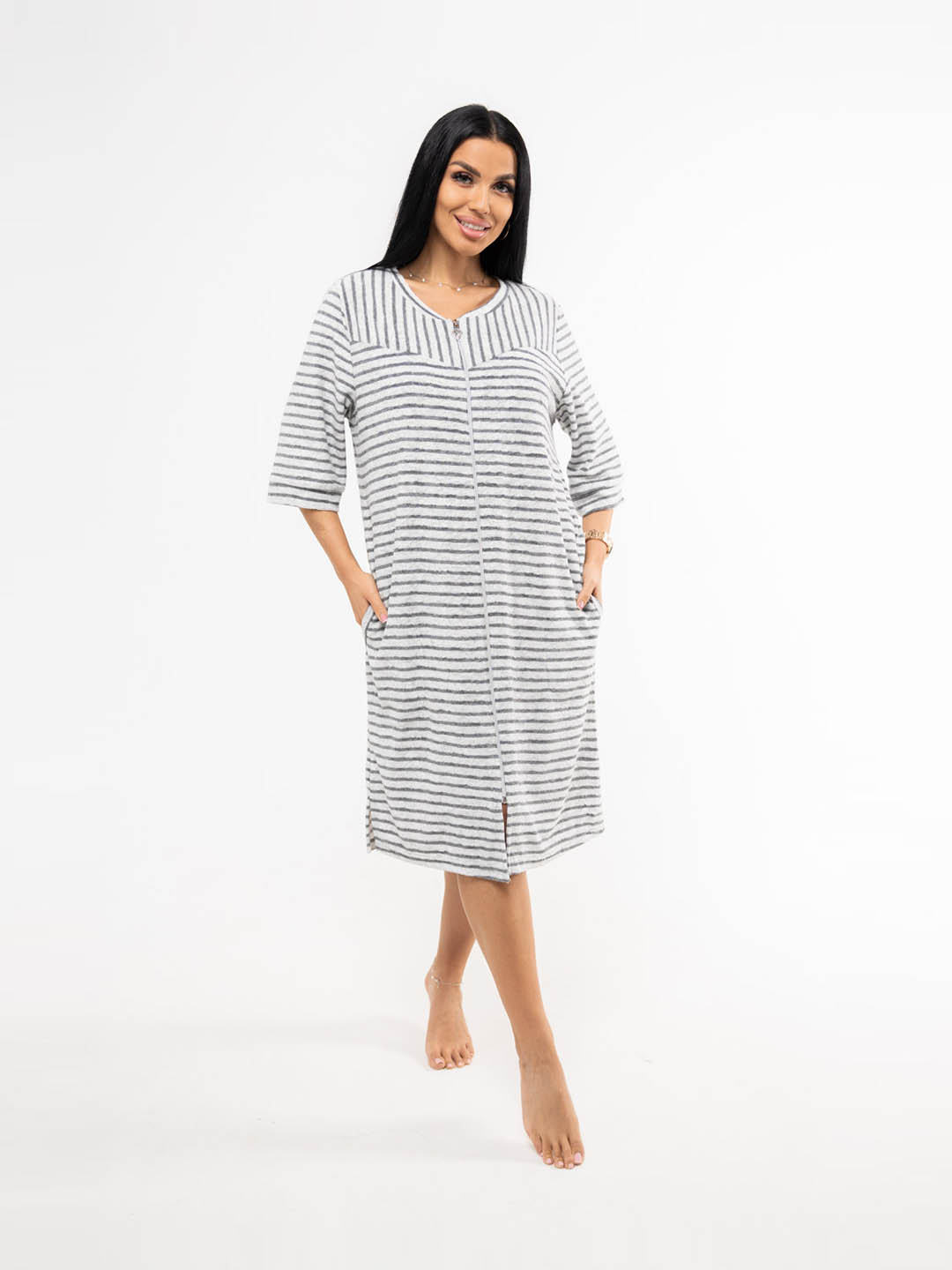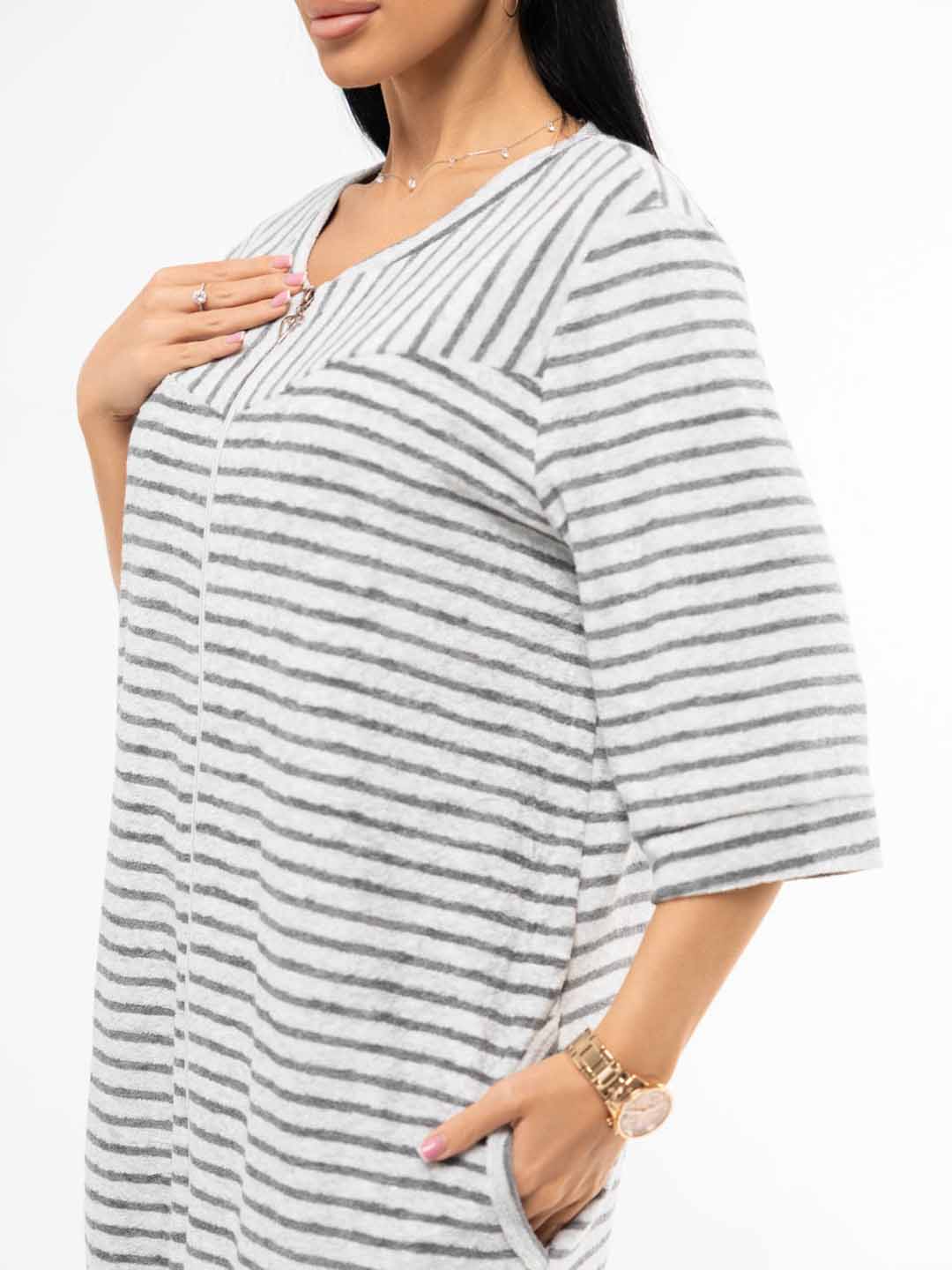 Уютный и стильный халат из мягкой махры серого цвета с полосками - идеальный выбор для спокойных утренних часов и вечернего расслабления. Подарите себе комфорт и элегантность каждый день!