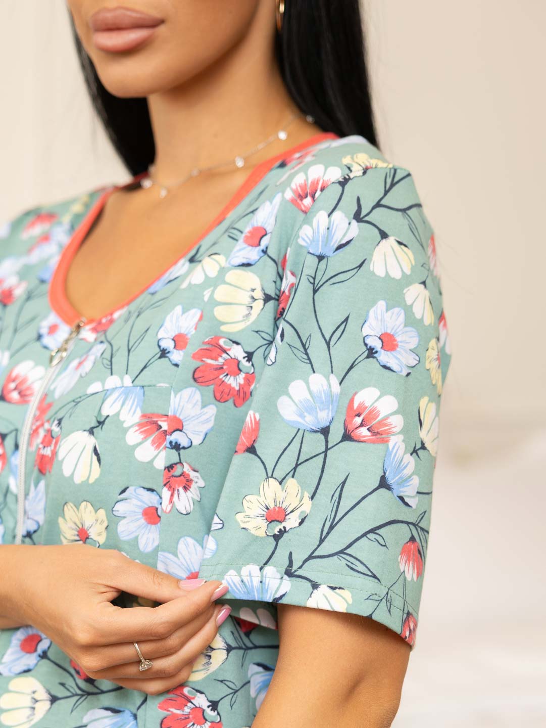 Уютный и стильный женский трикотажный халат идеально подойдет для релакса дома. Изготовлен из высококачественного хлопка, который отлично пропускает воздух и обеспечивает комфортное ношение. Прекрасный выбор для тех, кто ценит комфорт и красивый внешний вид дома.