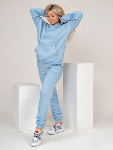 Женский трикотажный костюм из футера с начесом. Толстовка в стиле oversize со спущенной линией плеча и капюшоном. На полочке карман - кенгуру. Брюки полуприлегающего силуэта, с боковыми карманами с отрезным бочком. Отделка из ткани в рубчик, по низу толстовки, рукавам и по низу брюк. Костюм идеально подойдет для сезона осень-зима, в нем вы будете чувствовать себя комфортно в прохладную погоду. Модные тренды от бренда Текс-плюс.Ru придадут вашему образу неповторимость, а премиальное качество подарит незабываемое ощущение комфорта.