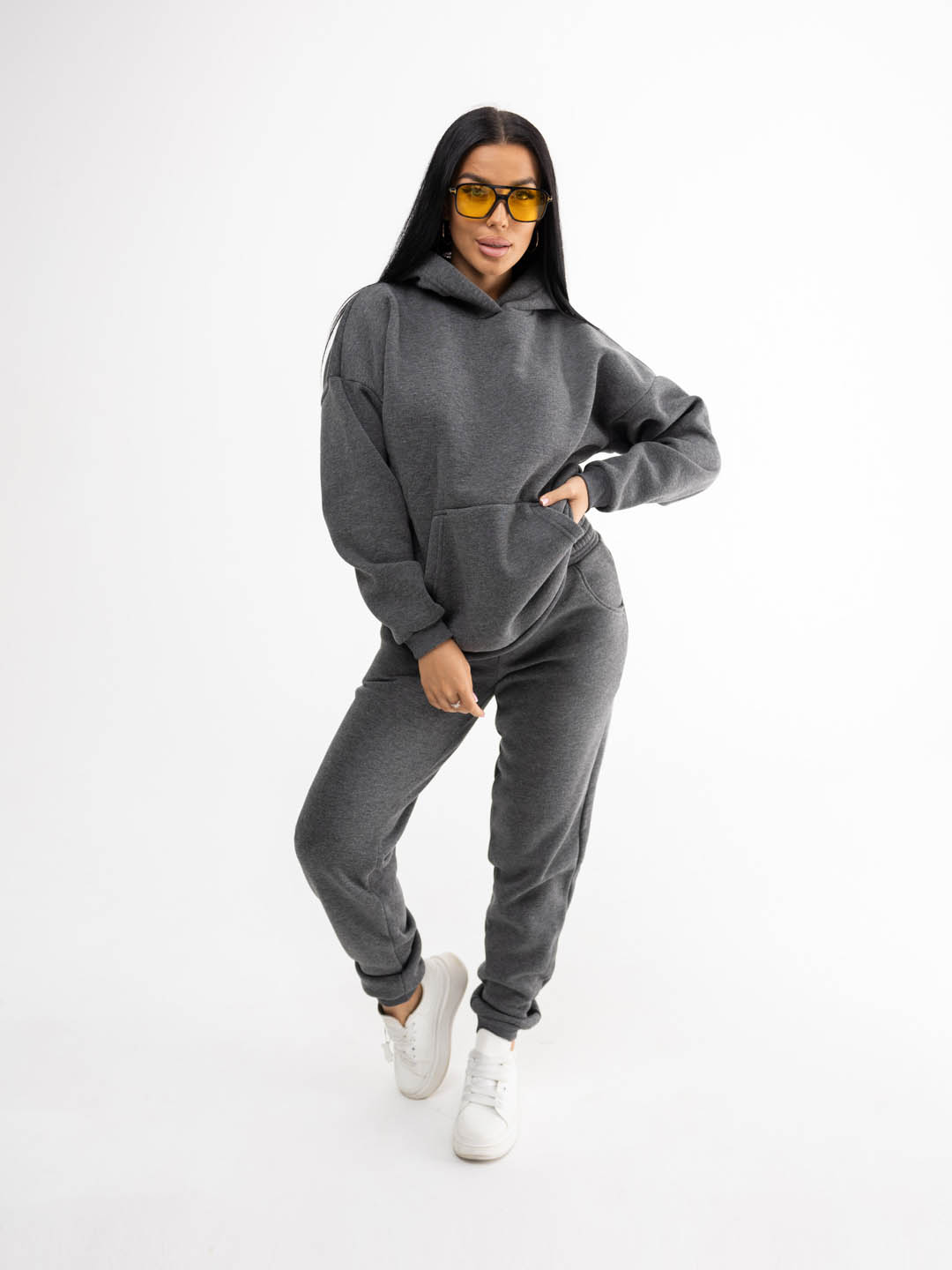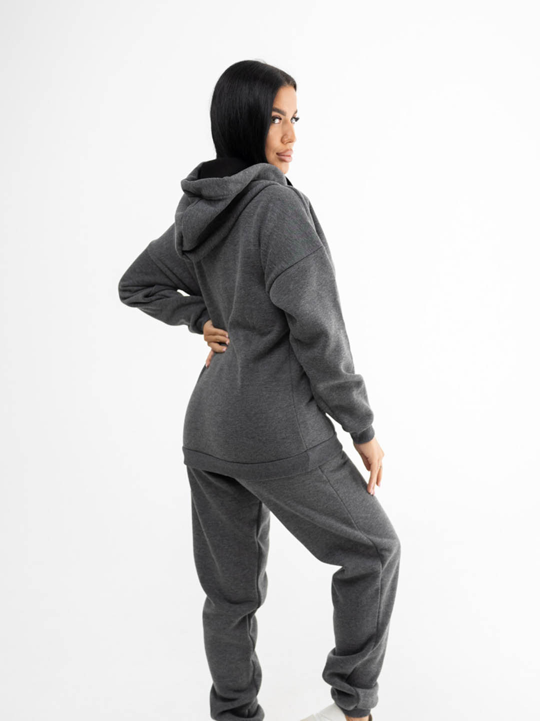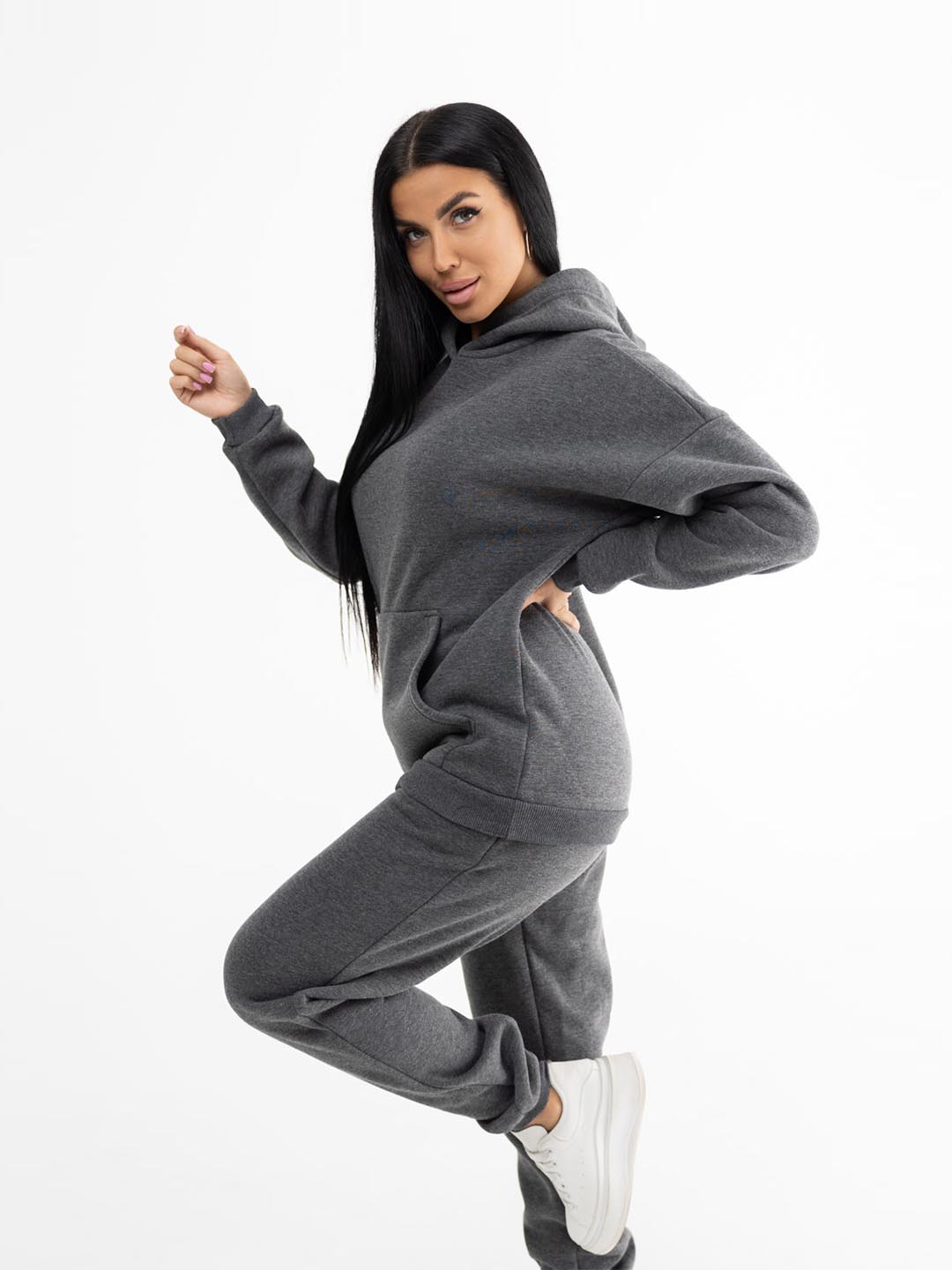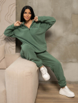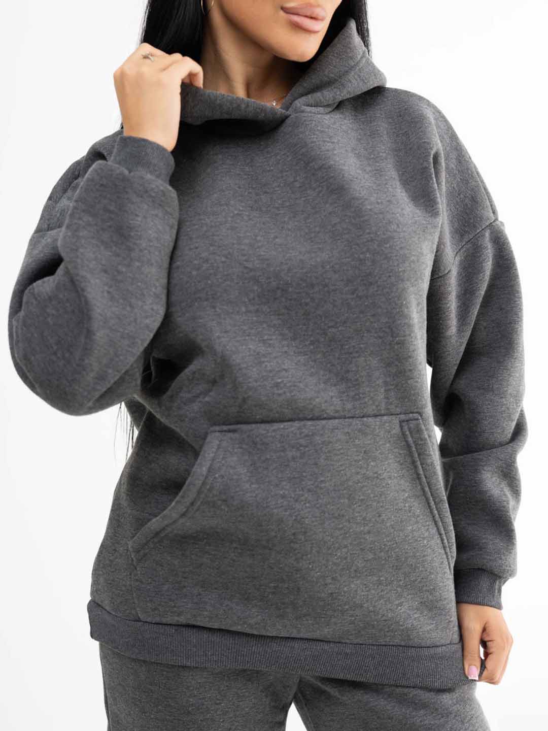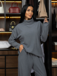Женский трикотажный костюм из футера с начесом. Толстовка в стиле oversize со спущенной линией плеча и капюшоном. На полочке карман - кенгуру. Брюки полуприлегающего силуэта, с боковыми карманами с отрезным бочком. Отделка из ткани в рубчик, по низу толстовки, рукавам и по низу брюк. Костюм идеально подойдет для сезона осень-зима, в нем вы будете чувствовать себя комфортно в прохладную погоду. Модные тренды от бренда Текс-плюс.Ru придадут вашему образу неповторимость, а премиальное качество подарит незабываемое ощущение комфорта.