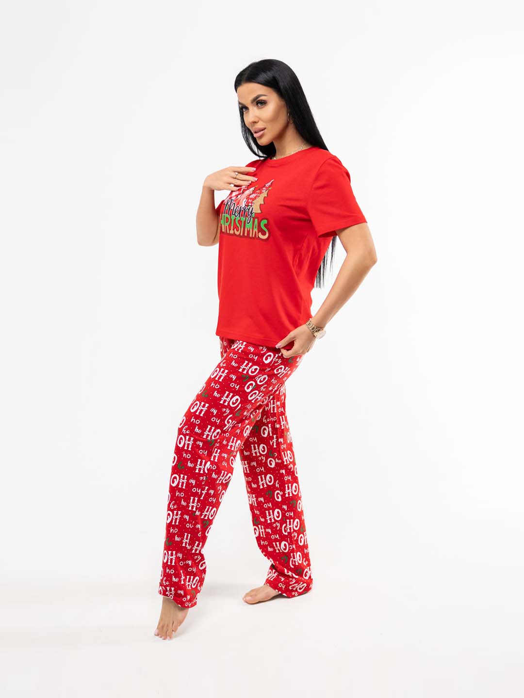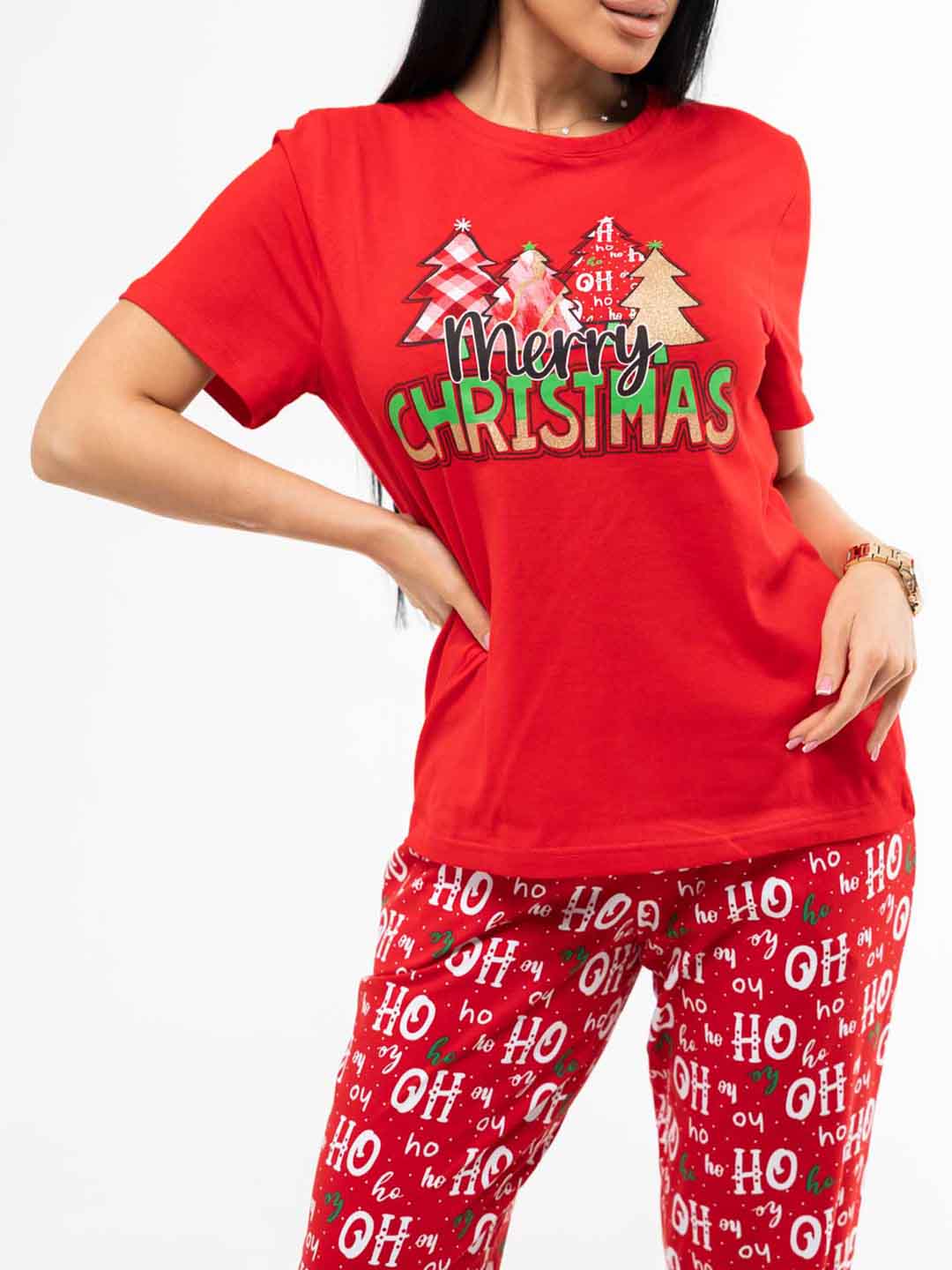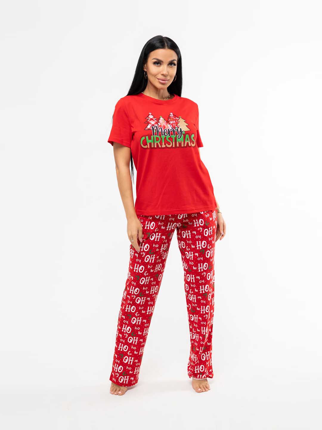 Костюм из 100% хлопка, уютный и мягкий. Милый принт не оставит никого равнодушным. Базовая футболка с яркой печатью поднимет Вам настроение. Брюки на резинке с карманами будут идеальным вариантом для дома. Костюм отлично подойдет, как для повседневной носки, так и для тематической фотосессии.