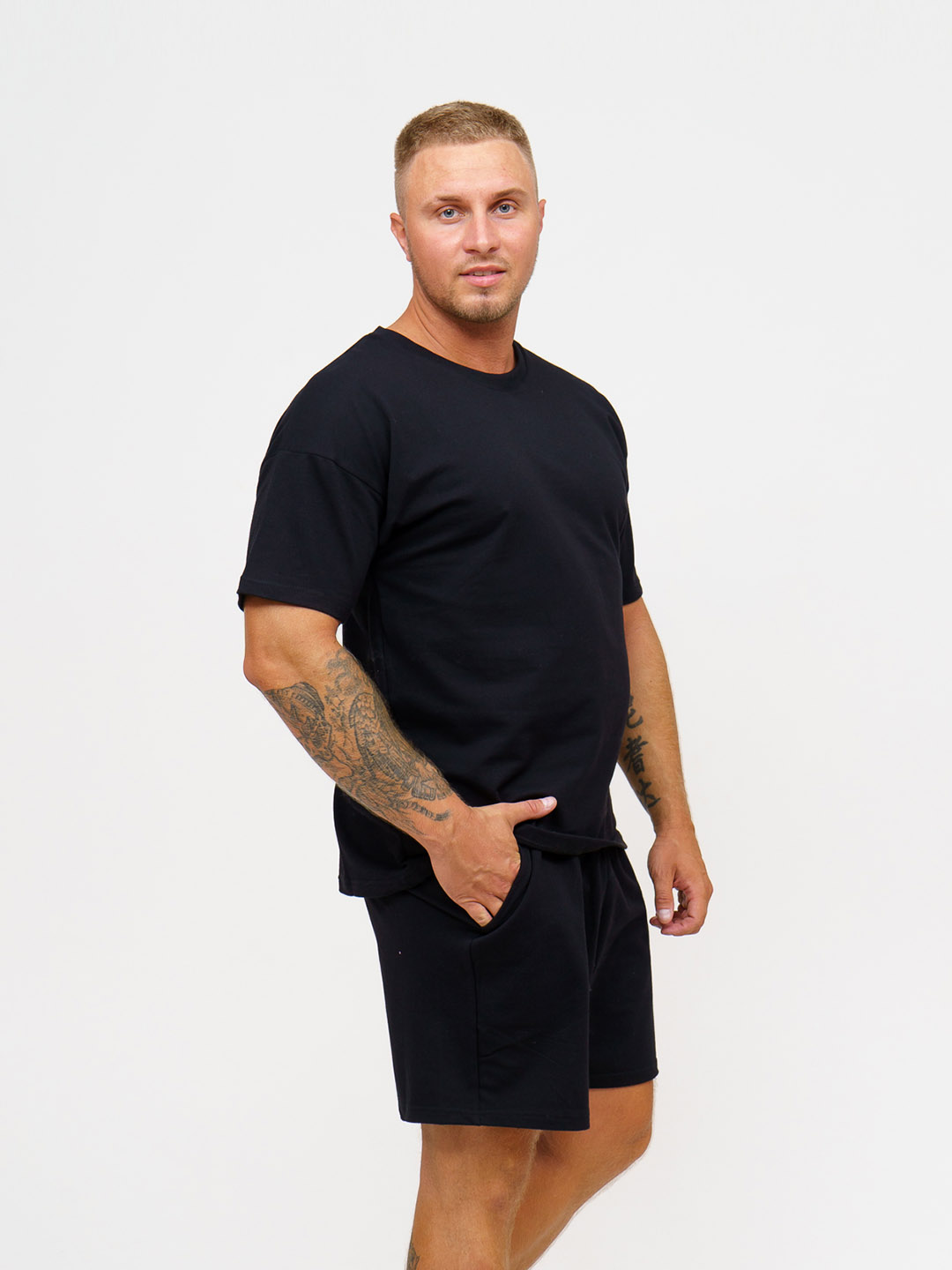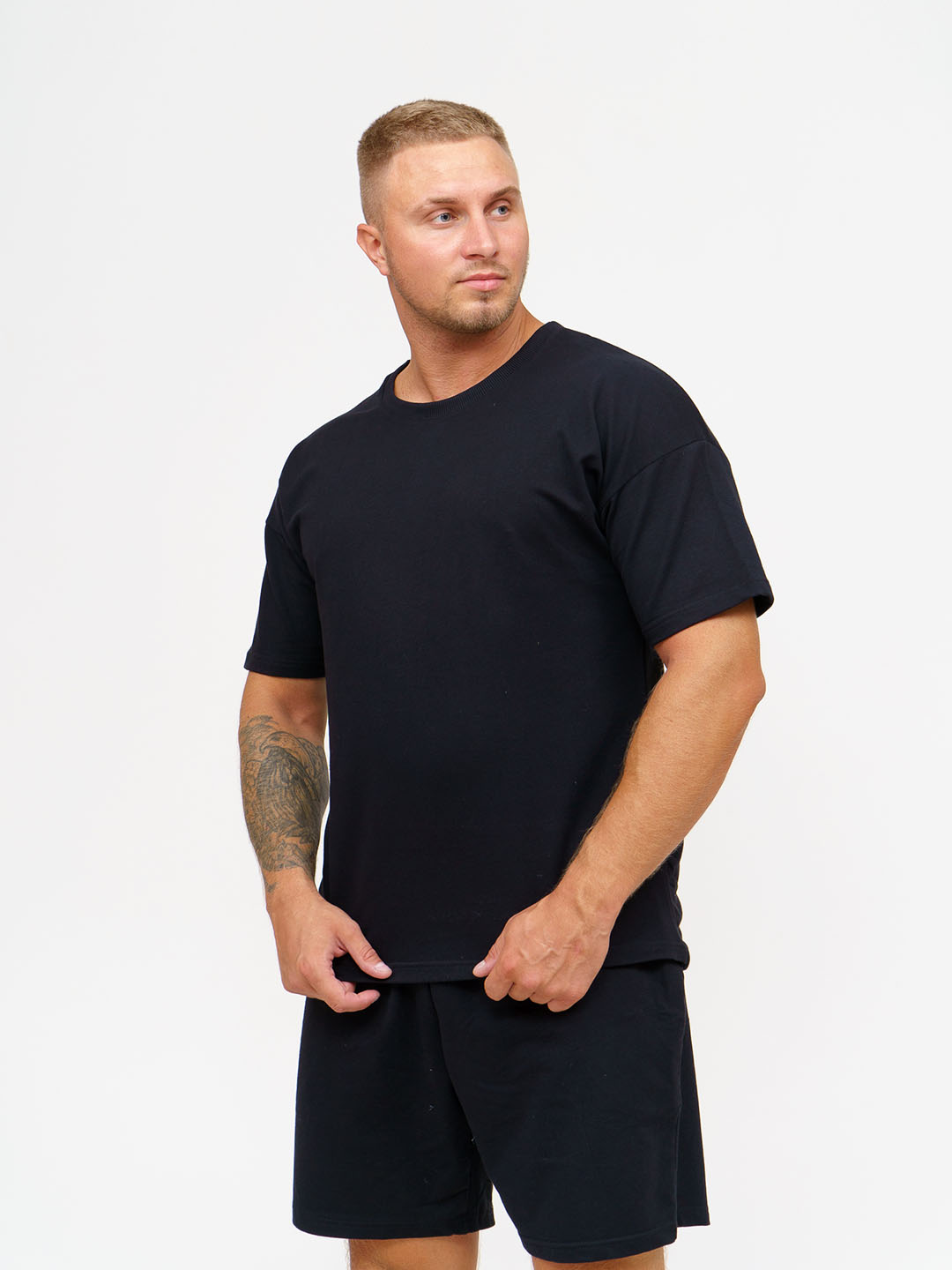 Мужской спортивный костюм с шортами - это самая востребованная модель этого лета. Костюм мужской представляет собой футболку и шорты. Футболка со спущенным плечом и печатью. Шорты с карманами с отрезным бочком, удобной посадкой и шнурком. Спортивный костюм изготовлен из премиального трикотажа (футер) турецкого производства, без добавления ПЭ (полиэстера), внутри петельки из натурального хлопка, не цепляются. Состав: 95%-хлопок, 5%-лайкра. Благодаря добавлению лайкры костюм сохраняет форму после многочисленных стирок, не скатывается. Материал костюма мягкий, приятный к телу, воздухопроницаемый, гипоаллергенный. В летнем костюме удобно заниматься спортом, повседневными делами, активным отдыхом! Стирать и гладить с изнаночной стороны!