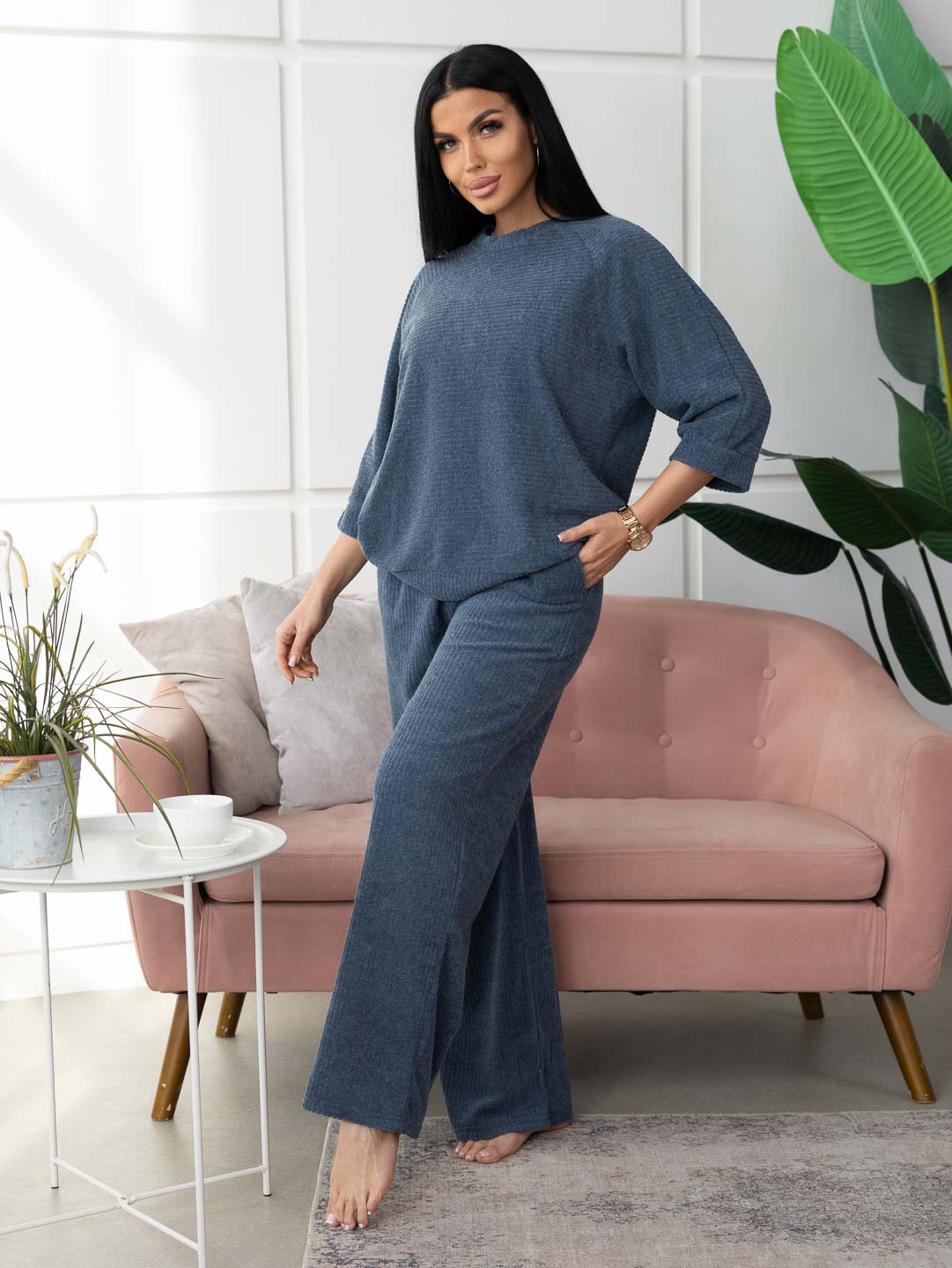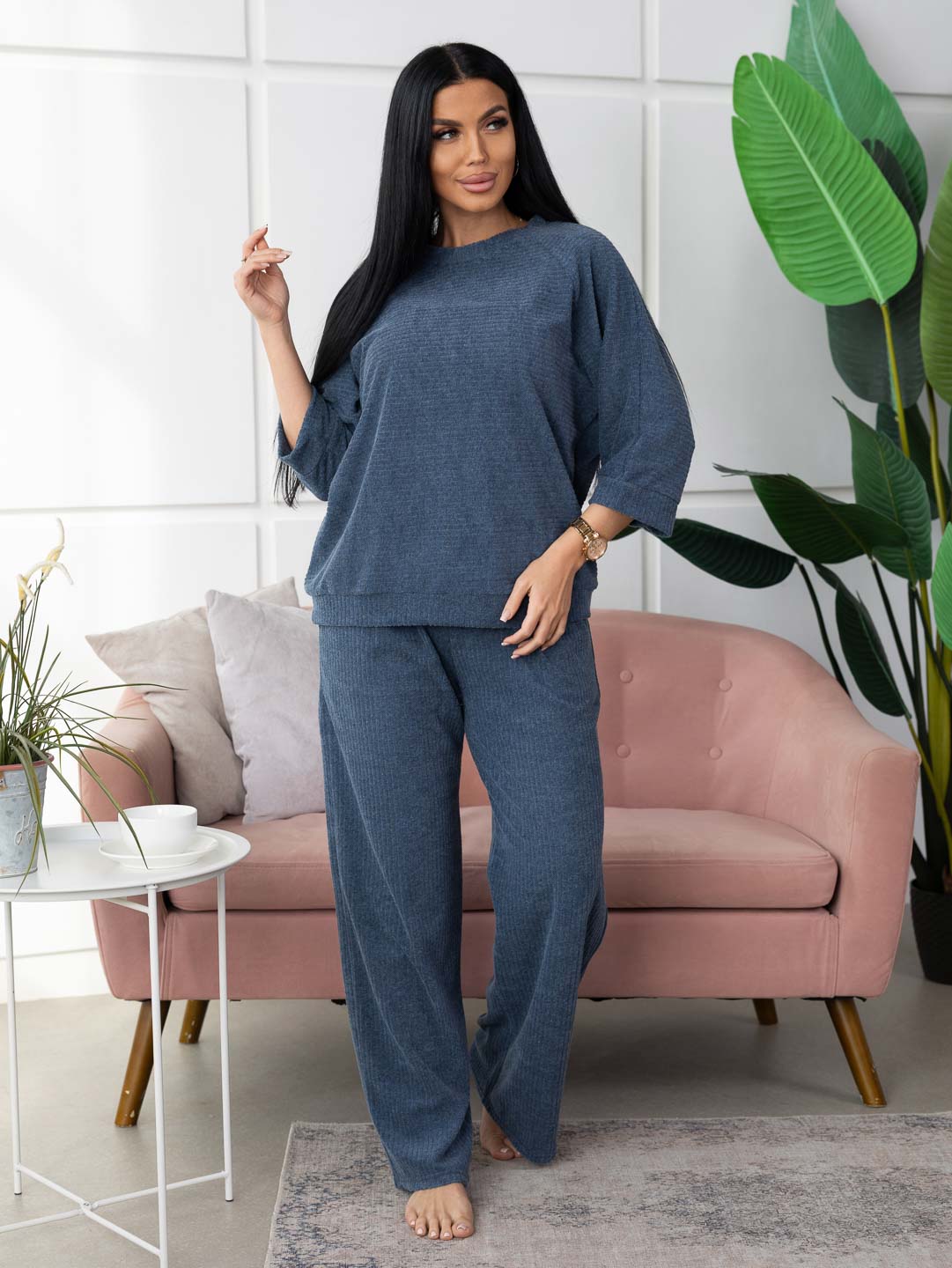 Погрузитесь в мир комфорта и стиля с нашим костюмом цвета индиго из махры. Этот элегантный комплект, состоящий из удобных брюк и стильной кофты, станет вашим верным спутником как в домашних условиях, так и на прогулках. Мягкий материал нежно обнимает тело, даря ощущение уюта и тепла, а глубокий индиго привносит нотку изысканности в каждый ваш образ!