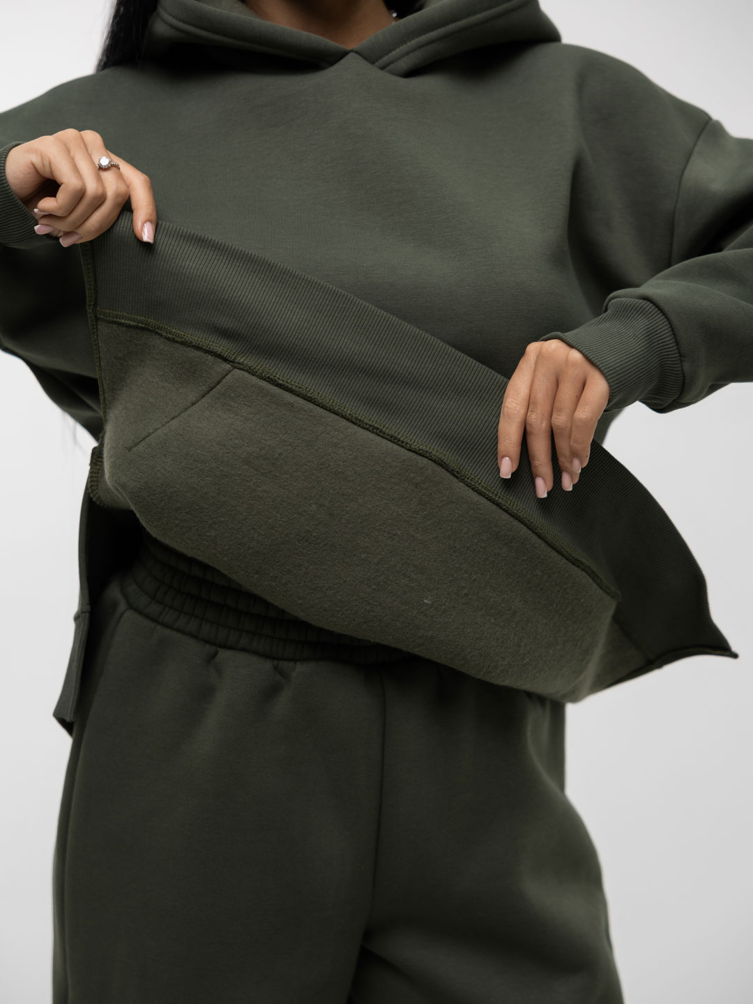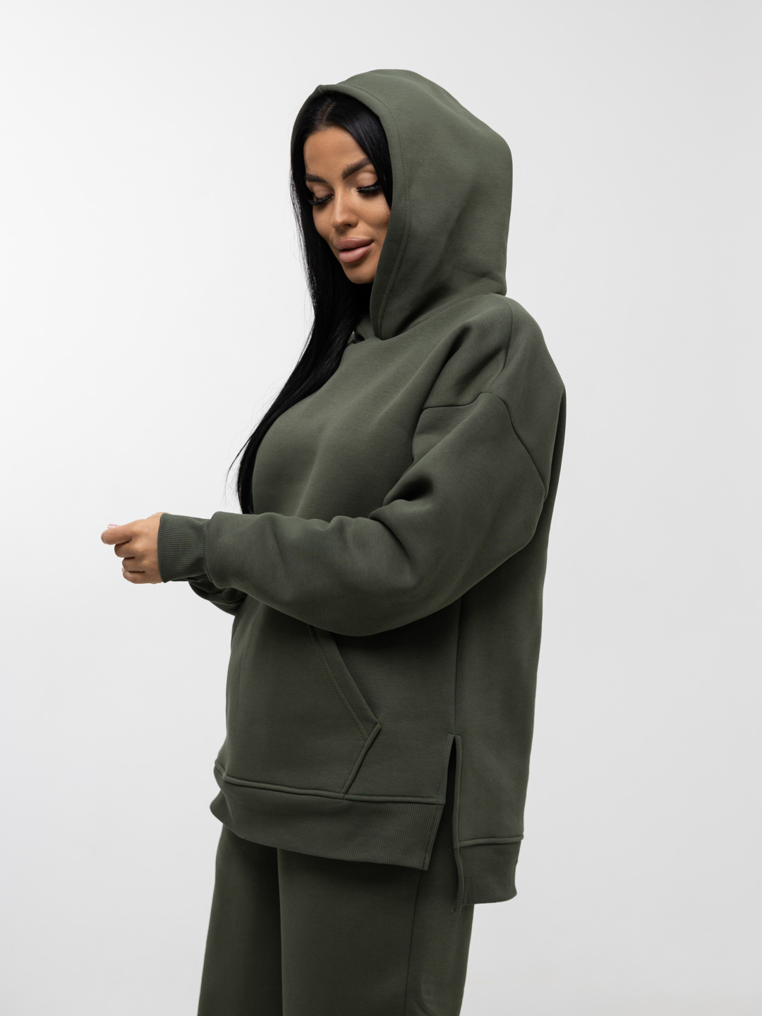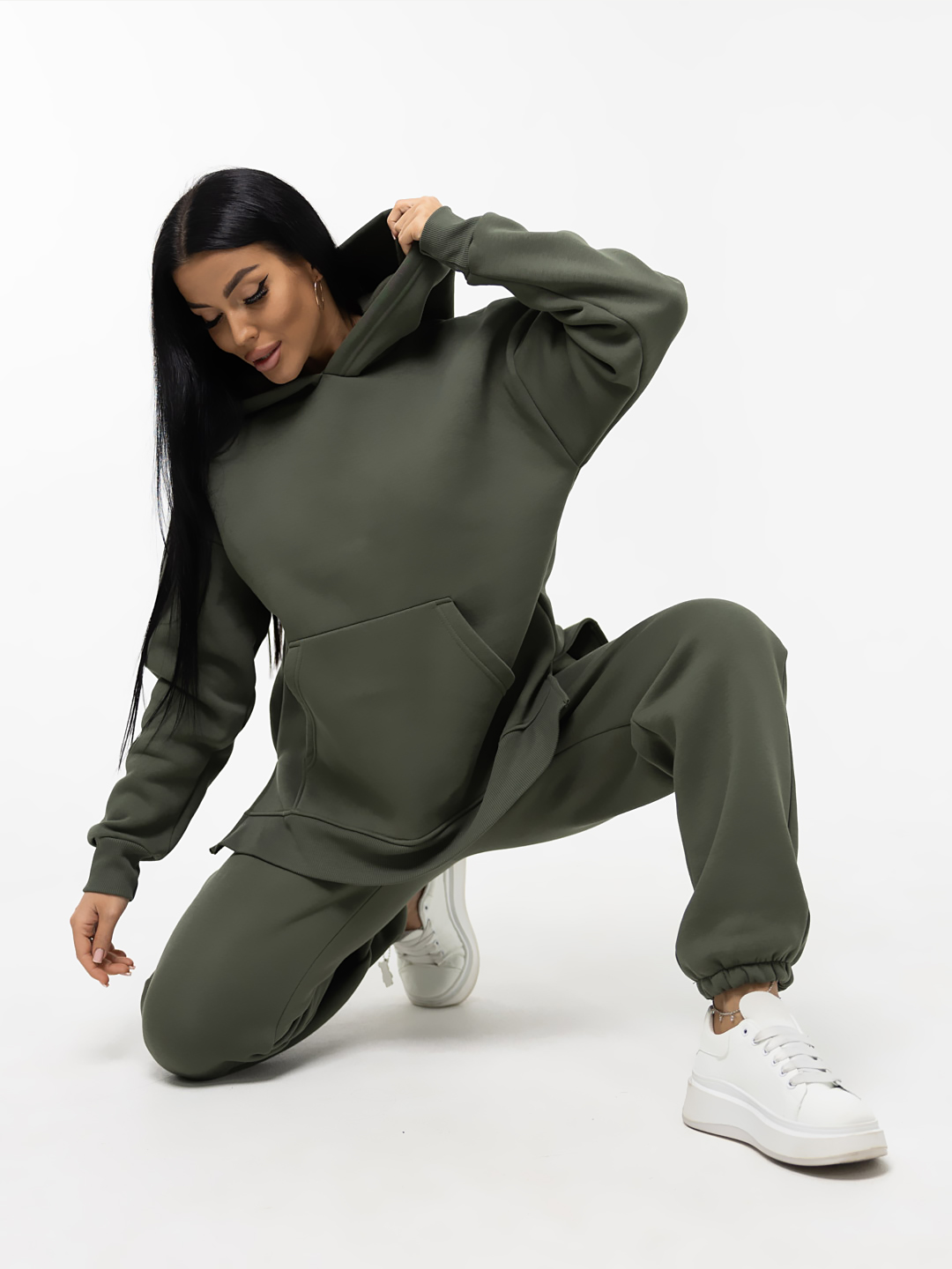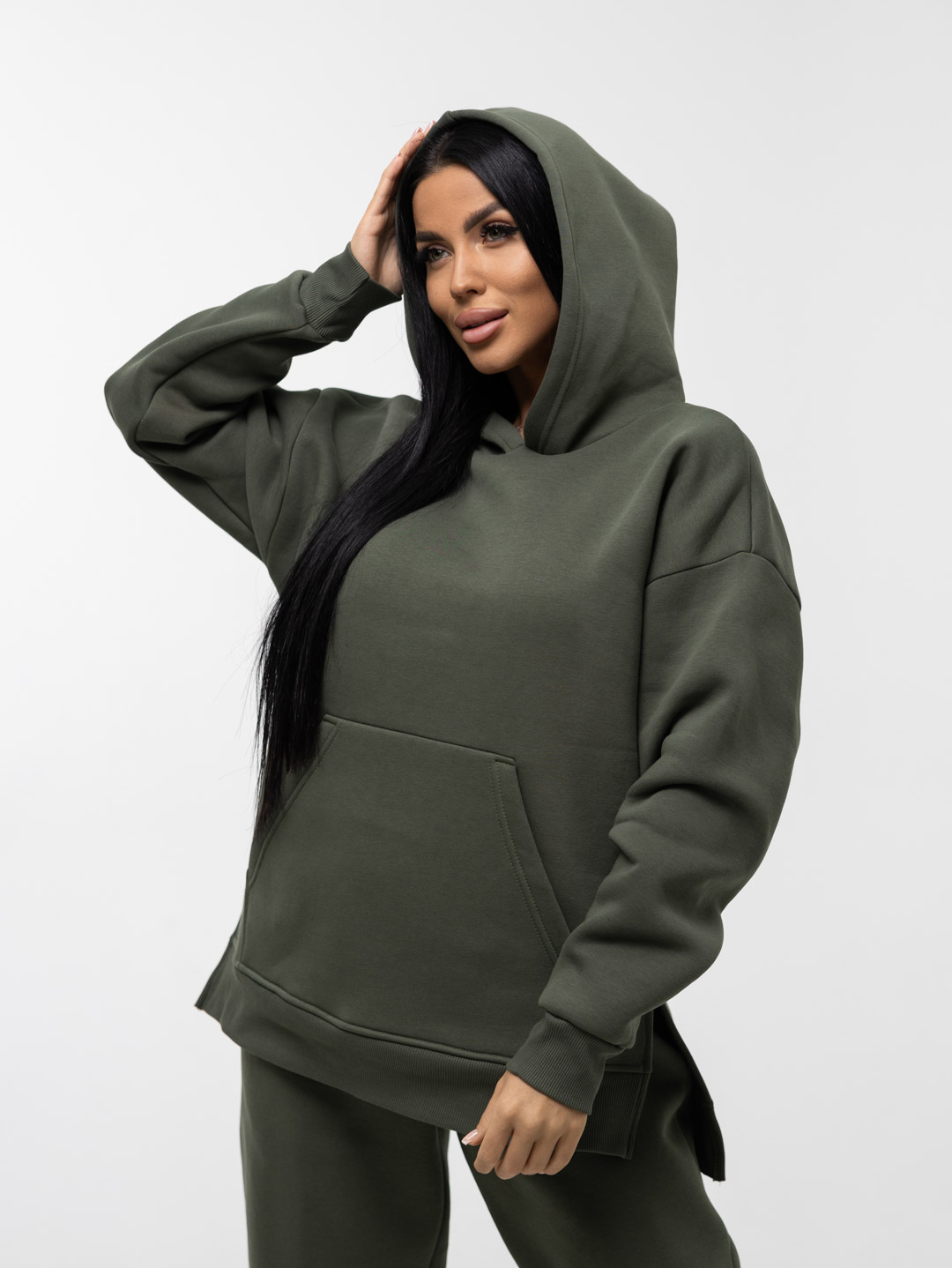 Ультрамодный костюм из качественного турецкого футера с начесом. В комплект входит толстовка и брюки. Толстовка свободного кроя с капюшоном и накладным карманом, брюки на резинке и с манжетами-резинкой внизу брючин. В этом костюме вам будет необыкновенно тепло и уютно.