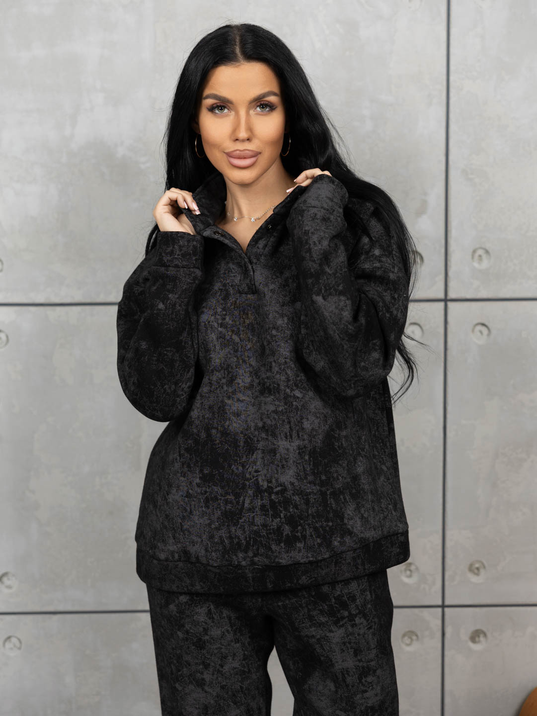 Зимний костюм из ультра модной ткани с начесом, эффект варенки добавляет изюминку изделию. Толстовка с воротником на кнопках защитит в морозы, сохранит тепло и комфорт. Брюки полной длины с карманами можно заправить в ботинки. В нашем костюме вы будете чувствовать себя уютно даже в самый морозный день.