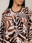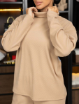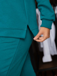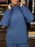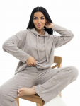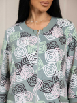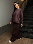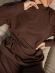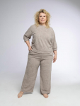 Элегентный домашний костюм из хлопка. Футболка с О-образной горловиной, спущенной линией плеча и коротким рукавом. Брюки-солнце с карманами и поясом на резинке.