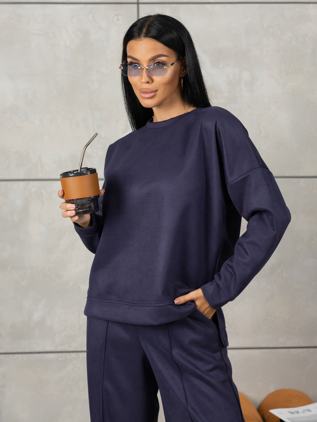 Почувствуйте себя королевой комфорта и стиля с нашим новым брючным костюмом! Двойка выполнена из мягкой и приятной на ощупь замши – прекрасный выбор на весну и осень. Оверсайз крой свитшота скрывает недостатки фигуры, разрезы по бокам и удлиненная спинка придают изюминку образу. А свободные штаны палаццо со стрелками – настоящая находка для современной девушки. Качественная одежда в стиле спорт-шик дарит уверенность себе и отличное настроение!