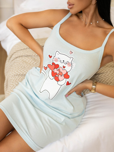 Ночная сорочка на тонких бретелях из 100%хлопка, идеально подойдет для сна. Слегка приталенный крой подчеркнет фигуру, яркий принт придаст изюминку изделию.