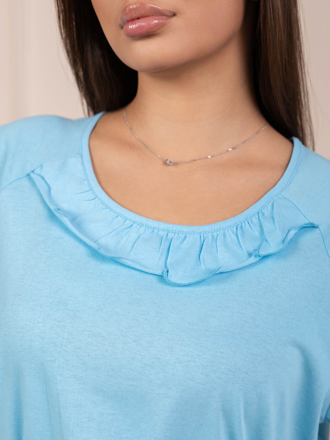 Ночная женская сорочка из хлопка, свободного кроя, длиной до колена, с рукавом реглан и печатью спереди. Рост модели 165.