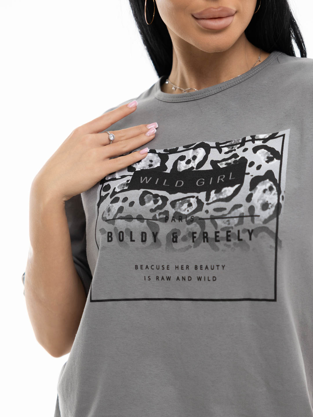 Стильная молодежная пижама с футболкой и юбкой-шортами. Футболка с О-образной горловиной, спущенной линией плеча и печатью спереди. Юбка-шорты имеют трапециевидный крой, выполнены без карманов, на резинке 2см. Костюм сшит из турецкой кулирки, которая отличается мягкостью.