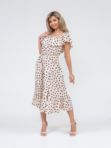 Женское легкое платье полуприлегающего силуэта. Имеет классический , всегда актуальный, рисунок - горошек.