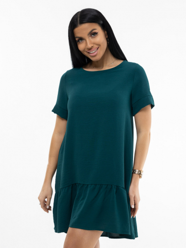 Воздушное платье с легким мятым эффектом, асимметричной линией низа, коротким рукавом и округлой горловиной. Платье подойдет на любой случай, дополните платье сандалями и шляпкой и вот у вас модный лук для пляжа, замените сандали на туфли, возьмите маленькую сумочку и вот отличный образ на работу или свидание.