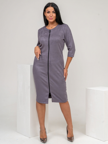 Замшевое женское платье с рукавами 3/4, на тракторной молнии спереди. Одинаково хорошо подходит и для повседневной работы в офисе и для праздничных мероприятий и городских прогулок. Платье без карманов и лишних элементов. Подчеркнет все достоинства фигуры и скроет недостаки.