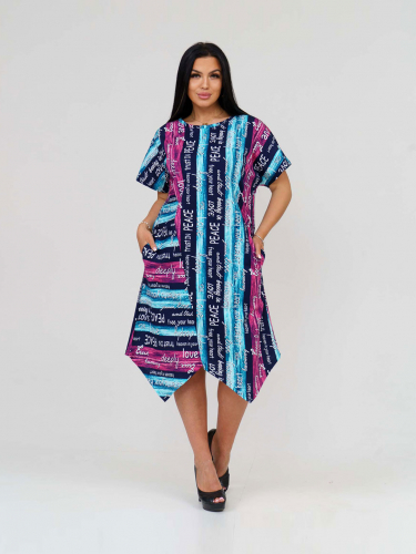 Женское летнее платье из 100% хлопка, длиной ниже уровня колена, цельнокроеный короткий рукав, горловина О-образная, в боковых швах карманы. Платье отлично будет смотреться с сумкой кросс-боди, джинсовкой и туфлями на небольшом каблучке.