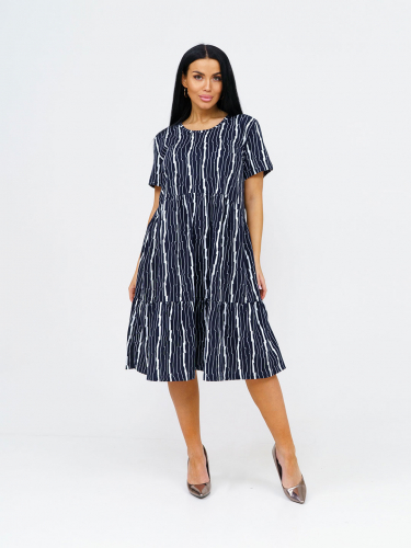Женское летнее платье из 100% хлопка, полуприлегающего силуэта, длиной ниже уровня колена, рукав короткий, горловина О-образная. Платье идеально подойдет для жаркого летнего дня.