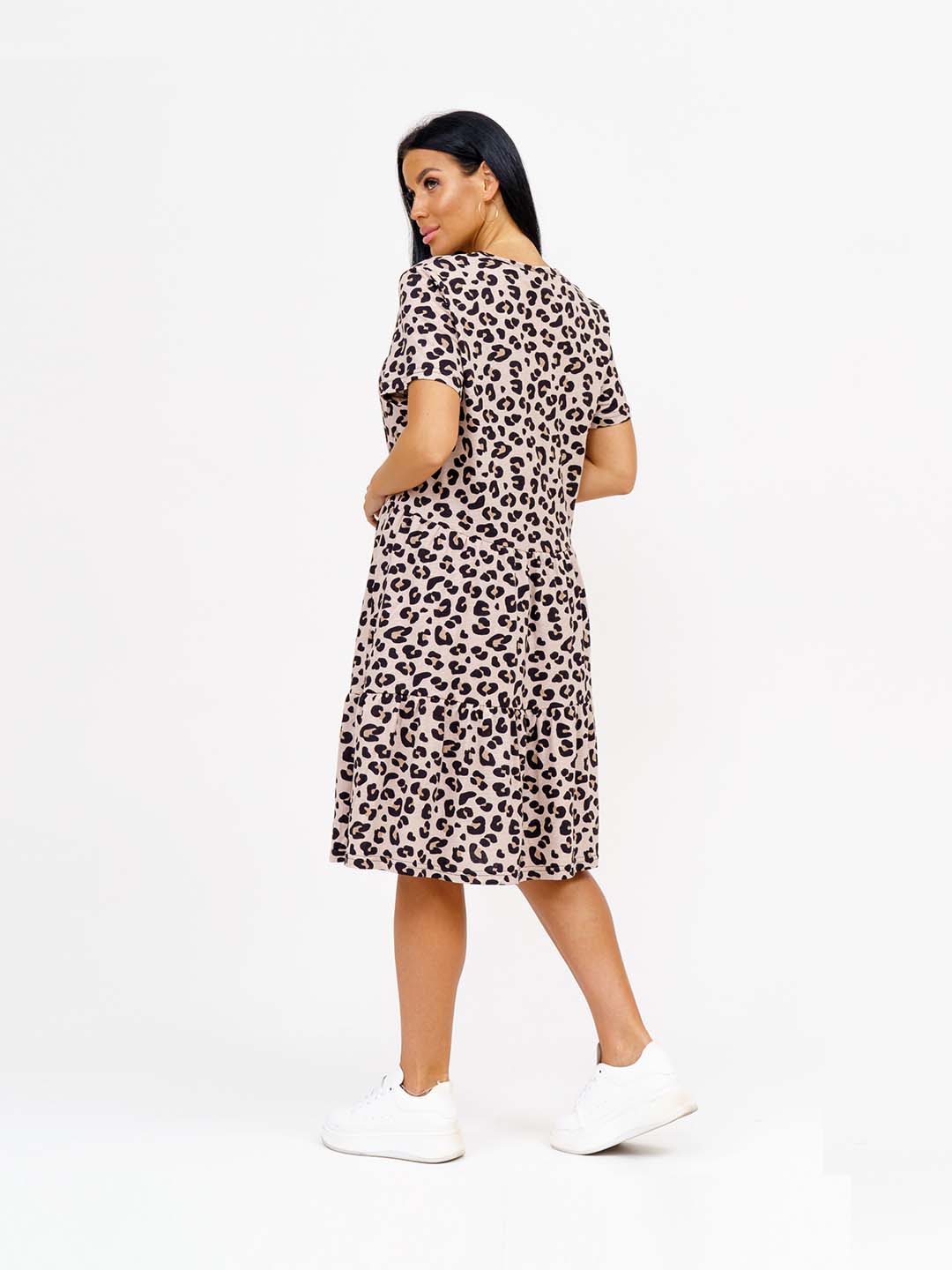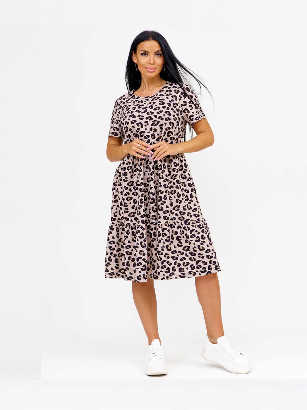 Женское летнее платье из 100% хлопка, полуприлегающего силуэта, длиной ниже уровня колена, рукав короткий, горловина О-образная. Платье идеально подойдет для жаркого летнего дня.