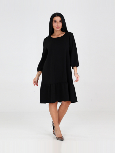 Платье женское свободного силуэта, вырез горловины О-образный, рукава 3/4 присборены. Костюмная ткань средней плотности, почти не мнется.