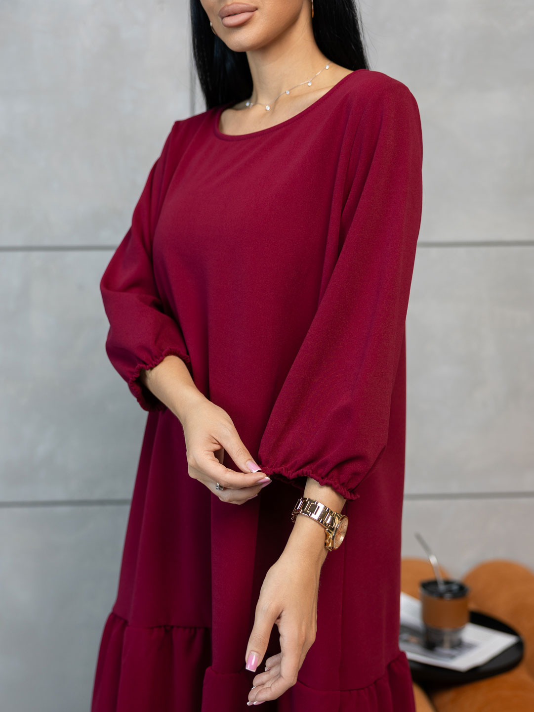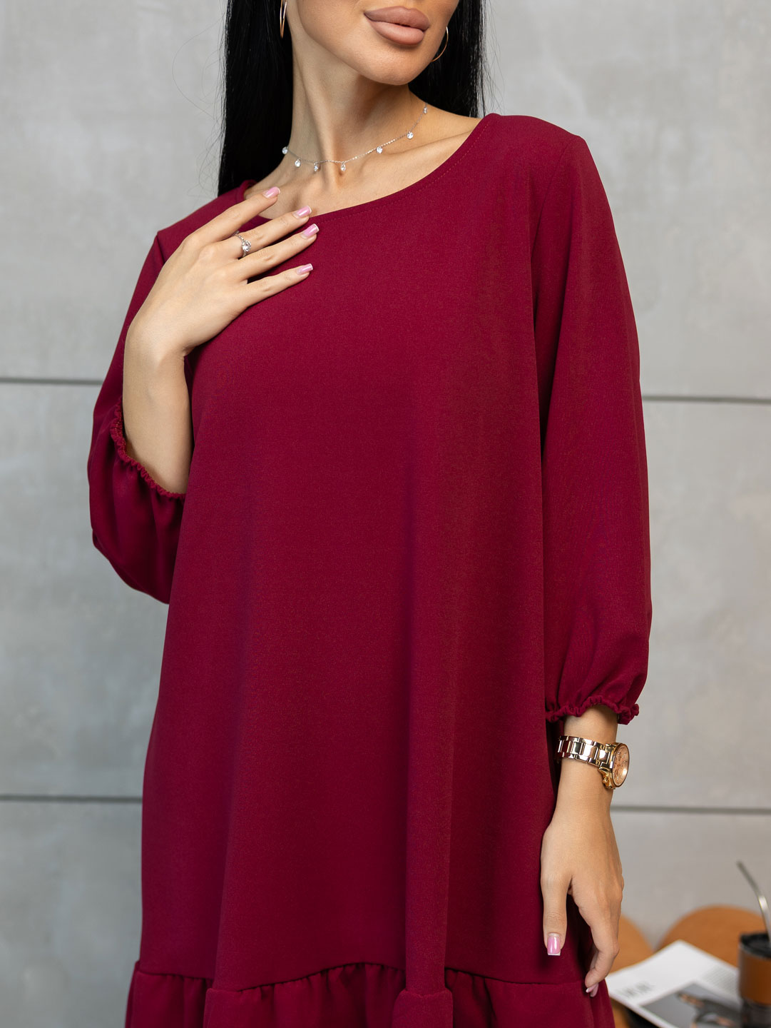 Платье женское свободного силуэта, вырез горловины О-образный, рукава 3/4 присборены. Костюмная ткань средней плотности, почти не мнется.