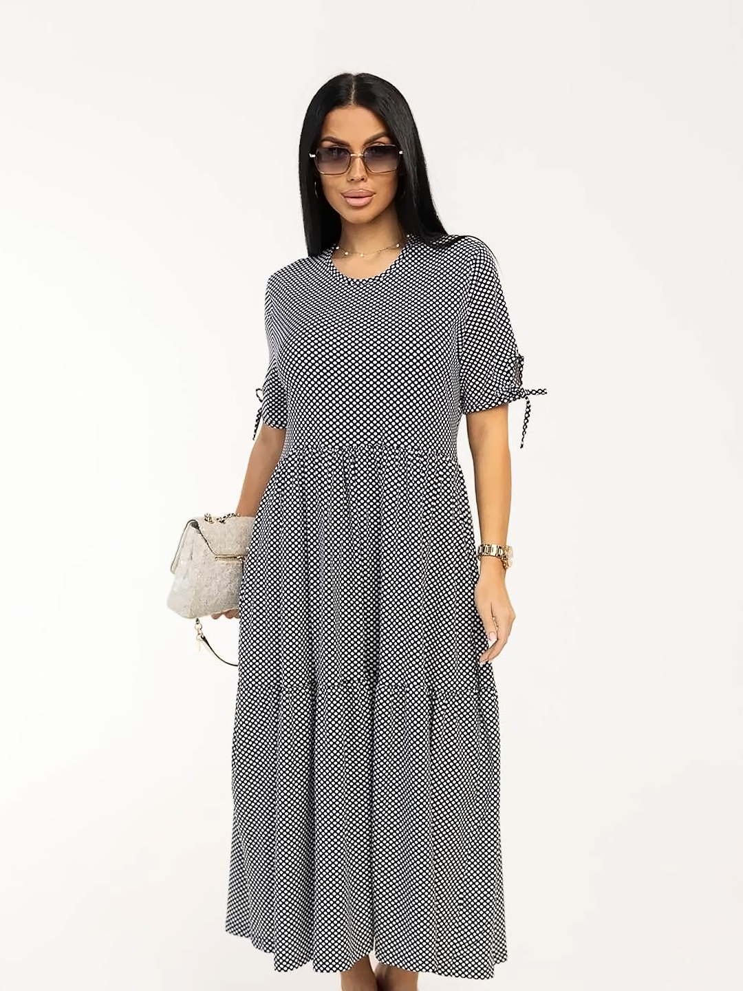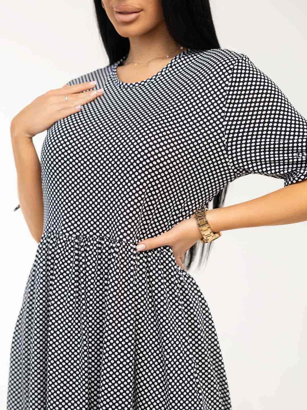 Хотите выглядеть стильно и комфортно этим летом? Предлагаем вам наше летнее женское хлопковое платье из кулирки! Кулирка – натуральное хлопковое полотно высокого качества. Идеальное сочетание легкости, комфорта и элегантности. Свободный крой платья позволит вам чувствовать себя уверенно. Короткий рукав делает платье универсальным и подходящим для повседневной носки, несколько рядов воланов добавит кокетливости в образ.
