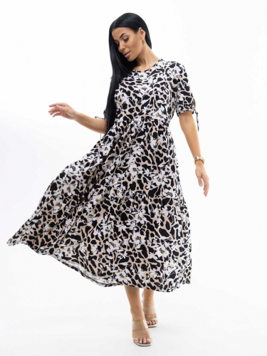 Хотите выглядеть стильно и комфортно этим летом? Предлагаем вам наше летнее женское хлопковое платье из кулирки! Кулирка – натуральное хлопковое полотно высокого качества. Идеальное сочетание легкости, комфорта и элегантности. Свободный крой платья позволит вам чувствовать себя уверенно. Короткий рукав делает платье универсальным и подходящим для повседневной носки, несколько рядов воланов добавит кокетливости в образ.