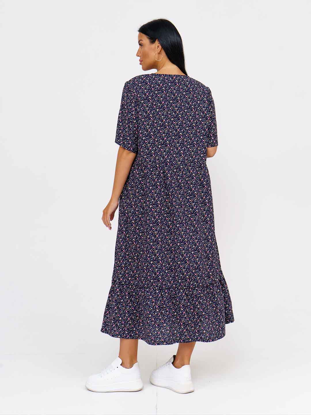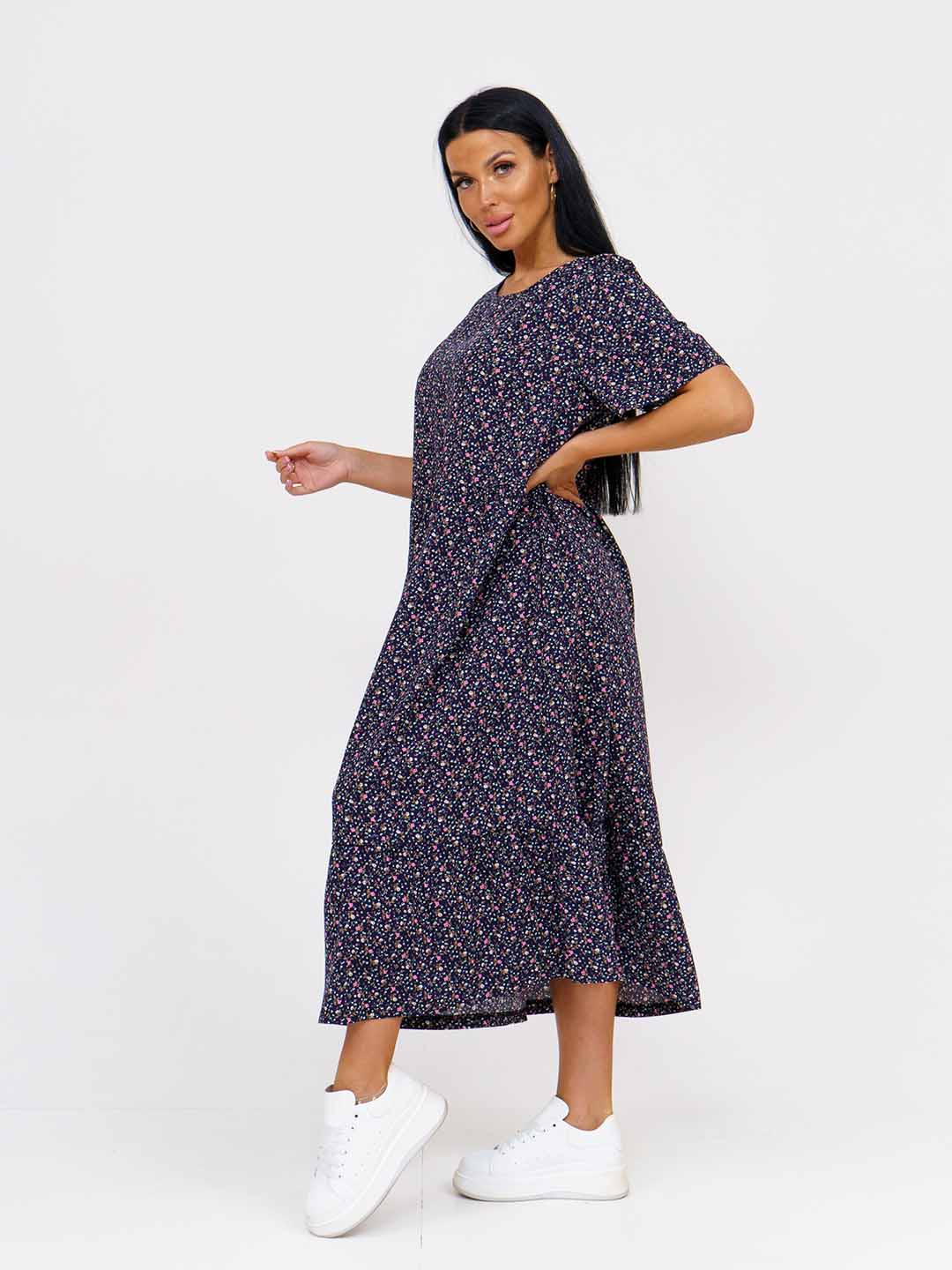 Женское платье сезона весна-лето из легкой, воздушной ткани, с коротким рукавом и О-образной горловиной. Платье украсит любую фигуру, отлично будет смотреться как с туфлями, так и с белыми кедами и джинсовкой.
