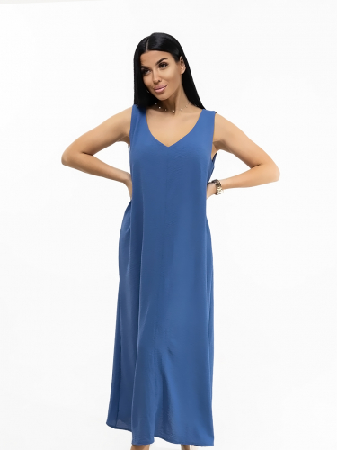 Платье макси с приоткрытой спиной и глубоким V-образным вырезом на передней части. Без рукавов. Легкое и элегантное. Подчеркивает достоинства и скрывает недостатки. Чтобы его хотелось надеть - повод не нужен.
