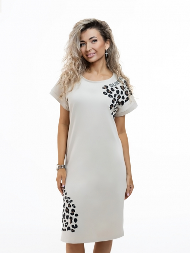Платье женское свободного силуэта. удлиненное. Вырез горловины - лодочка. Рукав - короткий, цельнокроеный.