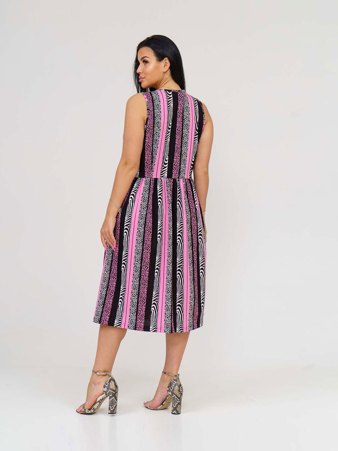 Сарафан женский на пуговицах свободного силуэта,отрезное по линии талии с резным лифом, длиной ниже колен. Вырез горловины - О образный. Без рукавов.