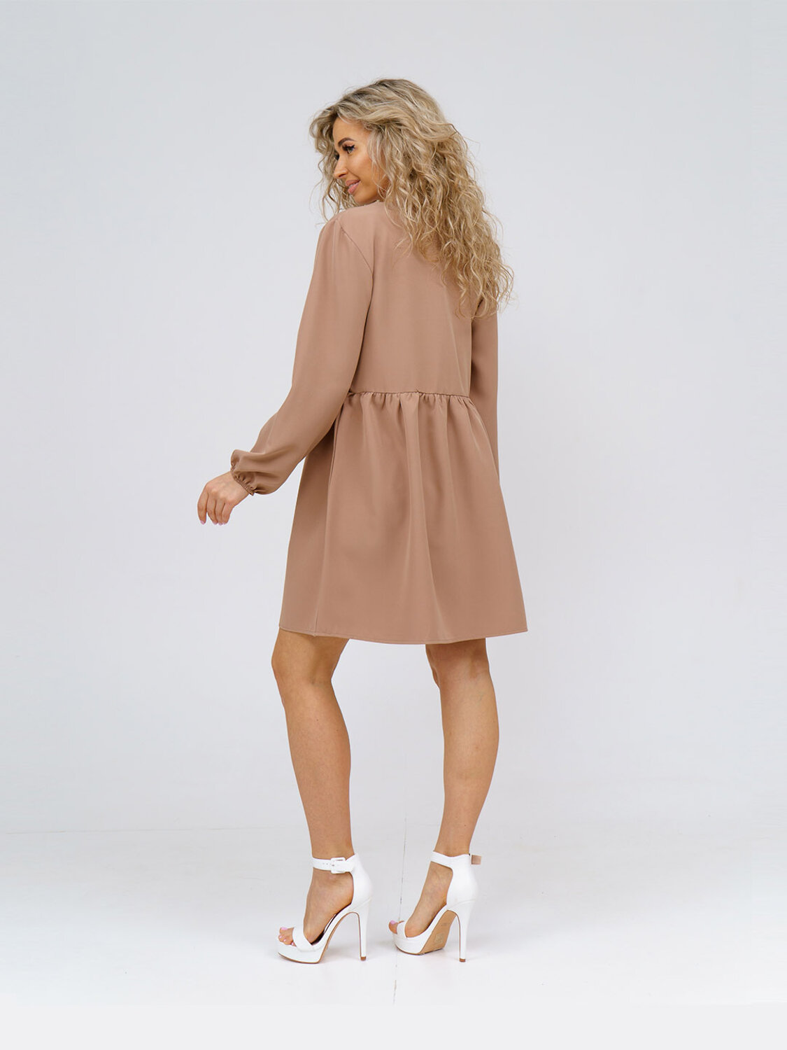 Женское платье из ткани " Барби" сшито из плотной костюмной ткани. Платье с чуть завышенным уровнем талии, юбкой со сборкой и длинным рукавом станет незаменимым предметом гардероба, идеально подойдет на каждый день, для похода с подругами в кафе, на праздник и даже в школу.