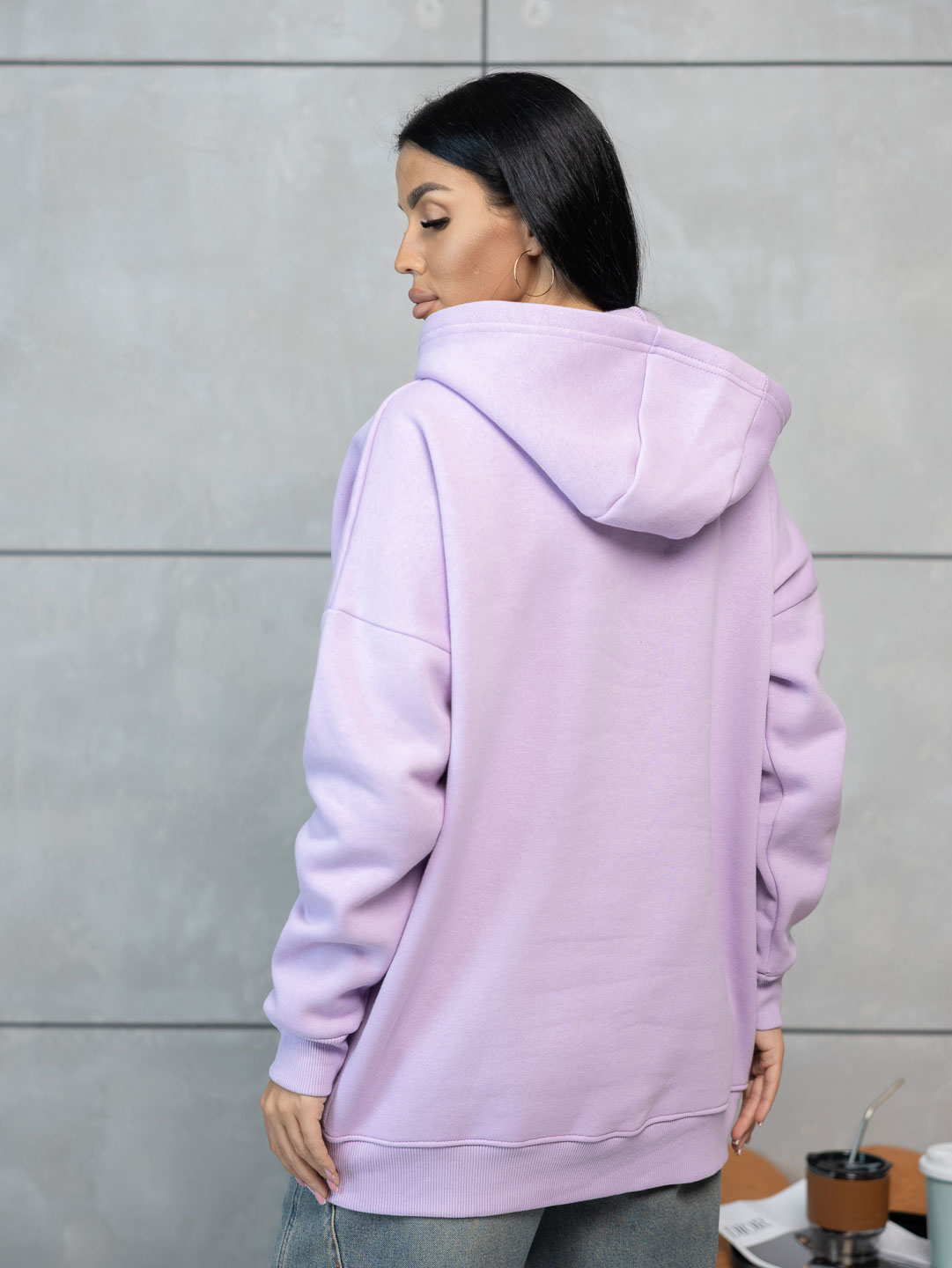 Худи женское с капюшоном, из плотного материала - футер с начесом. Рукав - спущенный, на манжете. На полочке вместительный карман-кенгуру, нижний край обработан манжетой.