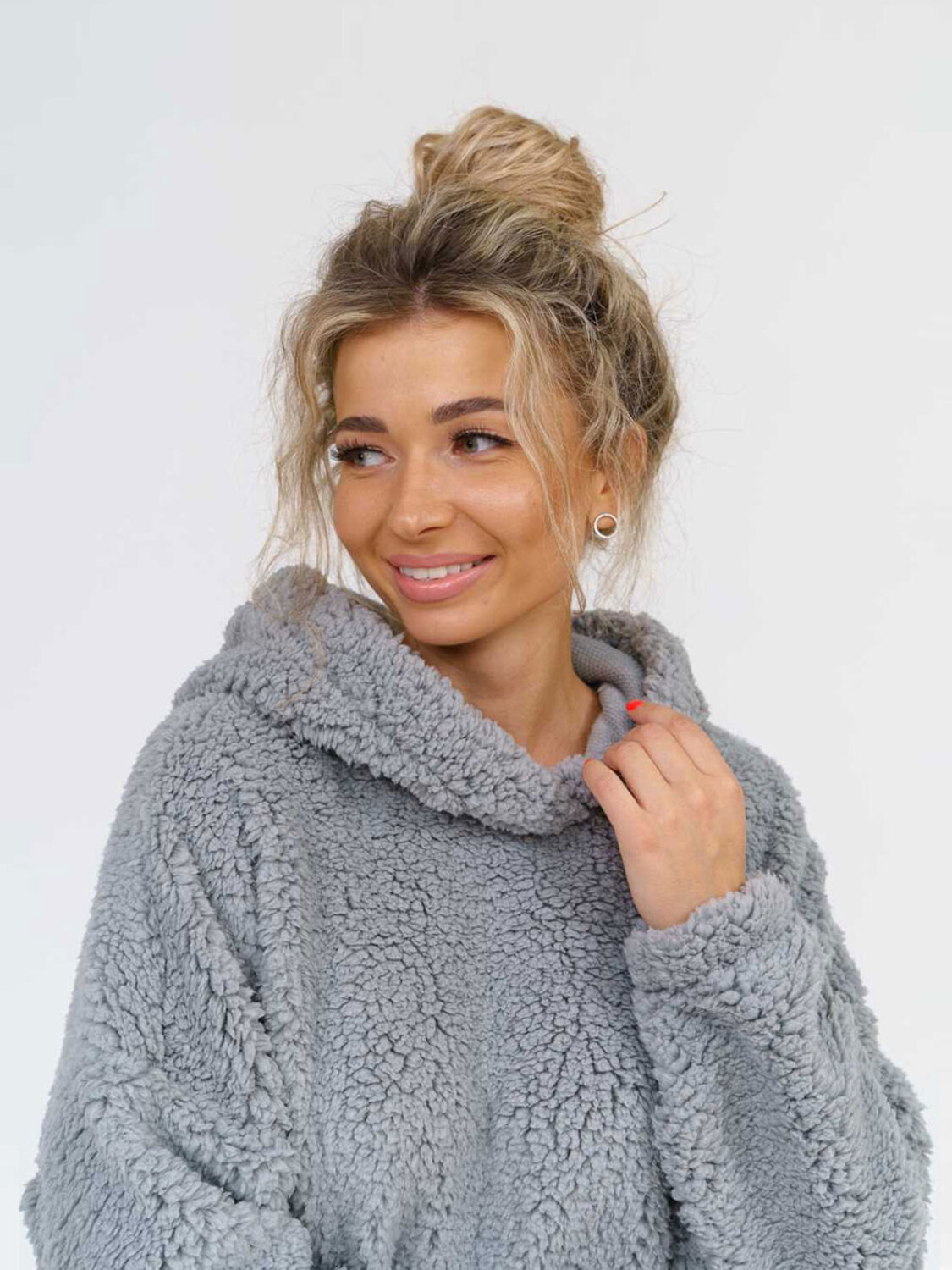 Толстовка оверсайз станет прекрасным подарком на любой праздник! Шерпа – синтетическое полотно с имитацией меха на лицевой поверхности. На ощупь материал плотный, приятный, мягкий. Хорошо согревает. Изнаночная сторона – текстильное полотно трикотажного переплетения. Фактура ткани хорошо видна на фото. Идеально подойдет для прохладного времени года. Толстовка идеально сочетается с любыми вещами в гардеробе с джинсами, юбкой, можно надеть поверх платья холодным вечером. Она непременно понравится взрослым женщинам и девочкам - подросткам.