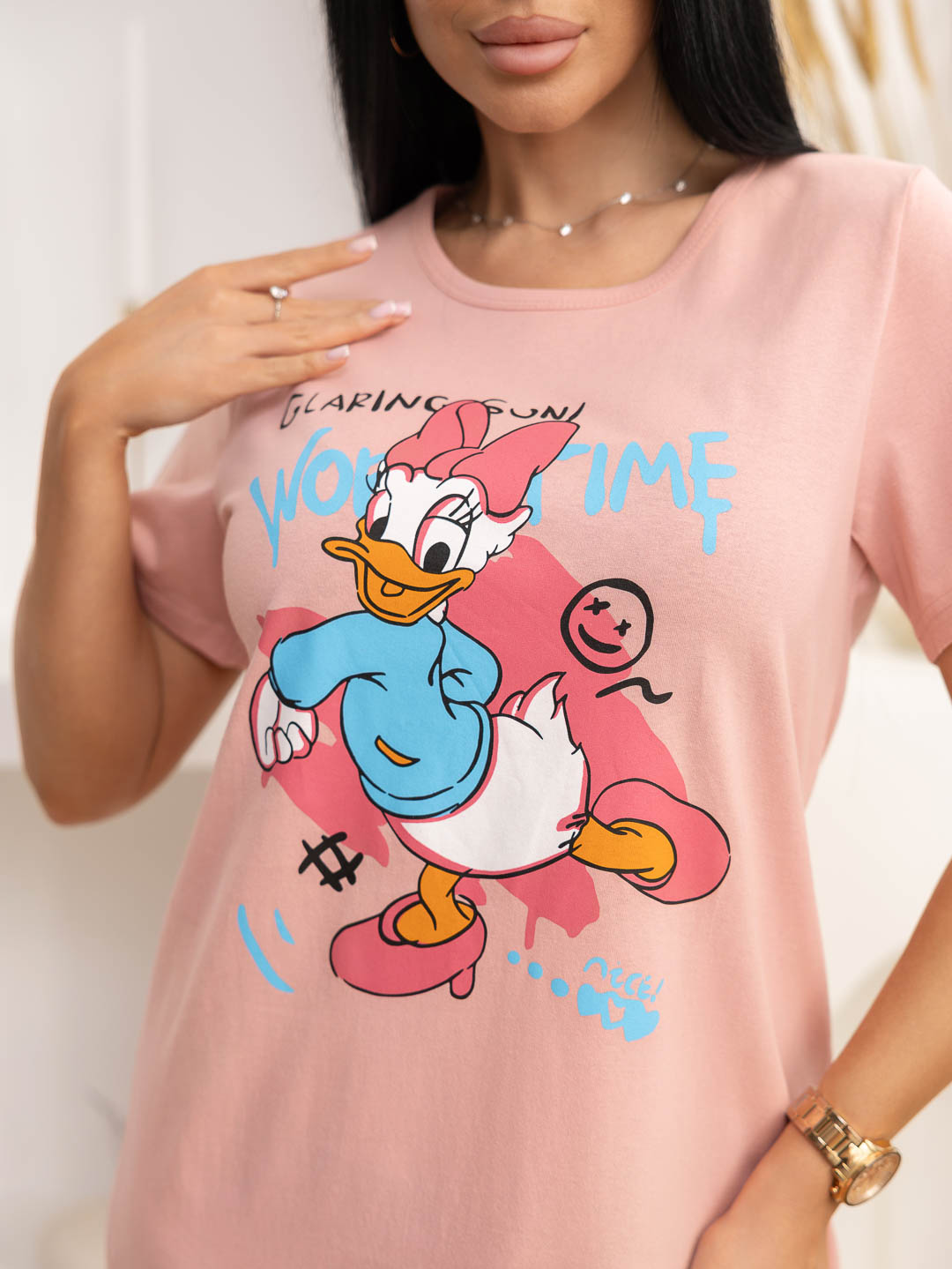 Туника женская, длиной выше уровня колена, выполненная из мягкого, приятного к телу трикотажного полотна. Платье имеет короткий втачной рукав и округлую горловину. На передней части красивый печатный рисунок.