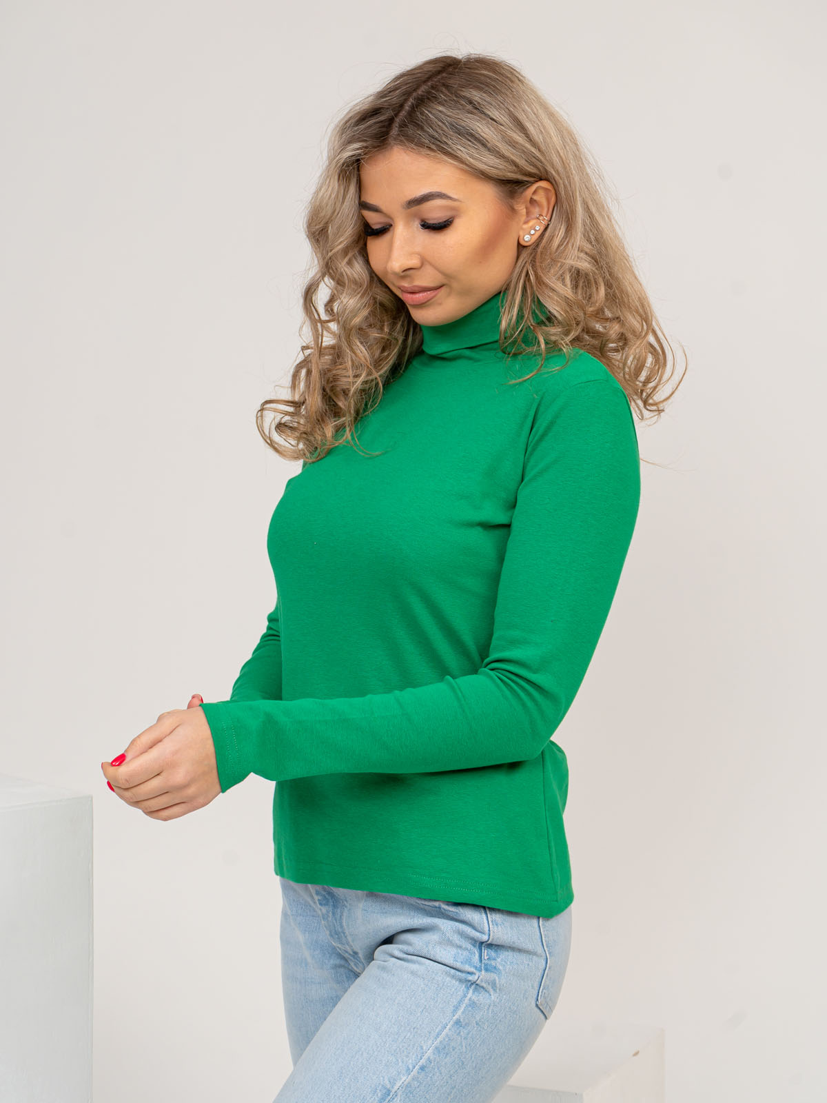 Базовая женская водолазка из трикотажного полотна, длиной до линии бедер, воротник отворачивается. С такой водолазкой можно составить множество стильных образов.