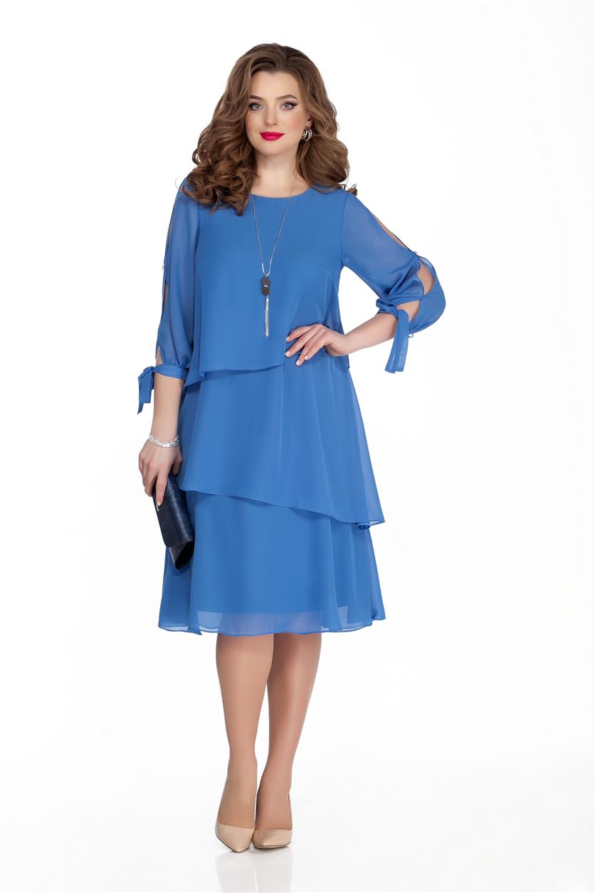 Нарядное платье трапециевидного силуэта с втачным рукавом. Рукав с фигурными отверстиями сбоку присобран на манжету, завязывающиеся в бант. Платье выполнено из шифона в несколько ярусов, на трикотажной подкладке.