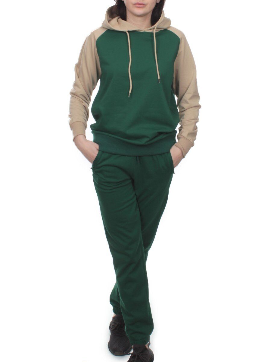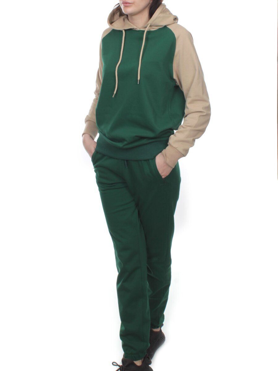 NOE103 BEIGE/GREEN Костюм спортивный женский (хлопок 90%, полиэстер 10%)
