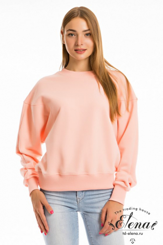 Толстовка из однотонного футера "воздушка", с рукавом покроя "летучая мышь". Спереди и на спинке фигурная линия рукава. Планка горловины, манжеты и пояс изделия из кашкорсе. Спереди вышивка.