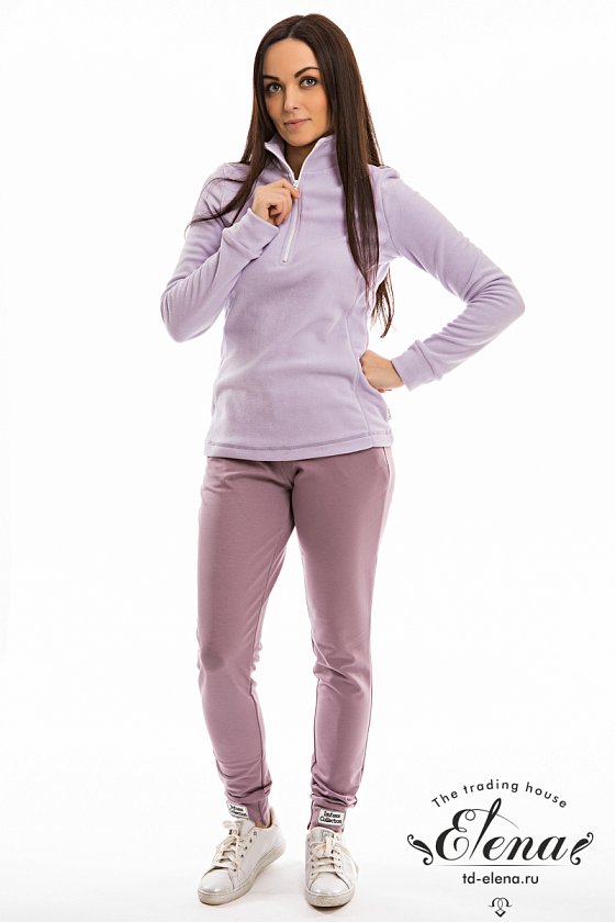 Толстовка из флиса с воротником-стойкой, втачными рукавами и короткой застежкой на молнию. Спереди и на спинке декоративная отстрочка по швам соединения деталей изделия.