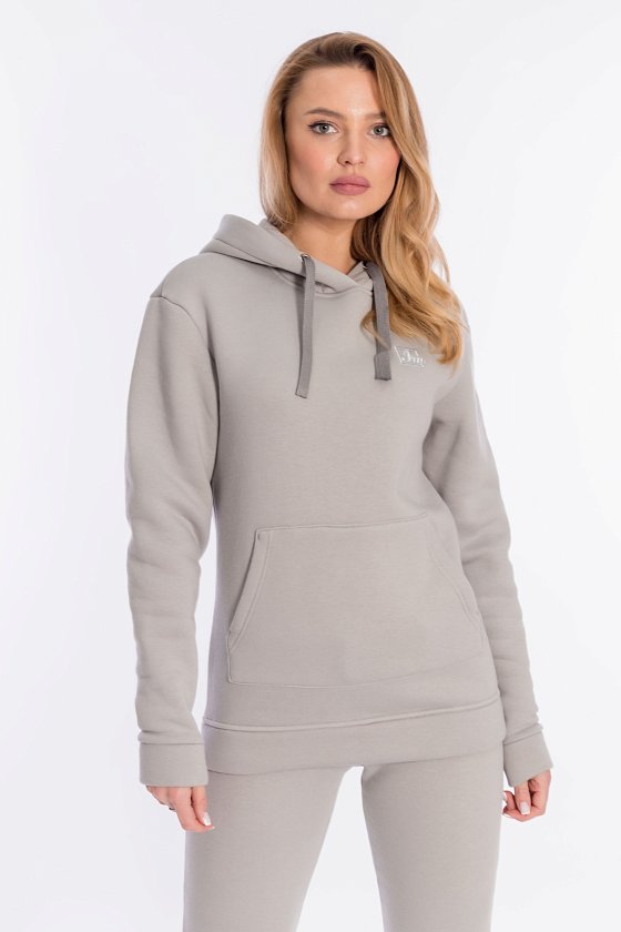 Толстовка выполнена из полотна c начёсом (футер трёхнитка). Капюшон со шнуром. Спереди расположена вышивка и карман-кенгуру.