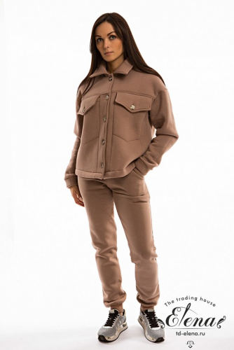 Тёплая, модная женская толстовка выполнена из полотна с начёсом (футер трёхнитка). Воротник отложной, длинные рукава заканчиваются манжетами из основного полотна. Толстовка застёгивается на пуговицы, спереди в верхней части размещены карманы с клапанами. Такая толстовка подойдёт для создания стильных и комфортных образов на каждый день.