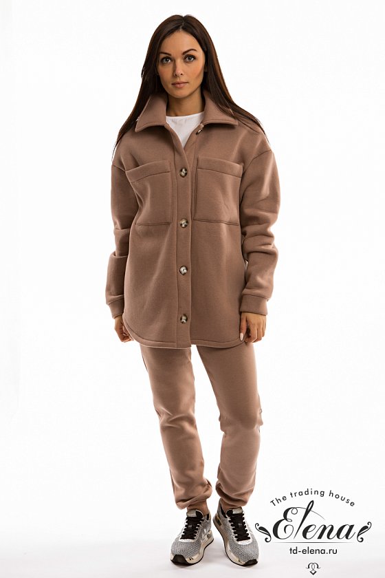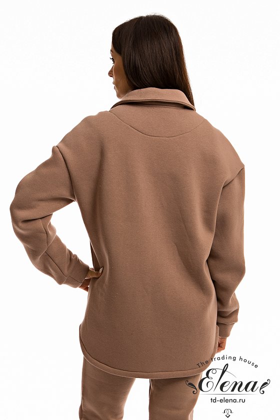 Тёплая, модная женская толстовка выполнена из полотна с начёсом (футер трёхнитка). Воротник отложной, длинные рукава заканчиваются манжетами из основного полотна. Толстовка застёгивается на пуговицы, спереди в верхней части размещены карманы. Такая толстовка подойдёт для создания стильных и комфортных образов на каждый день.