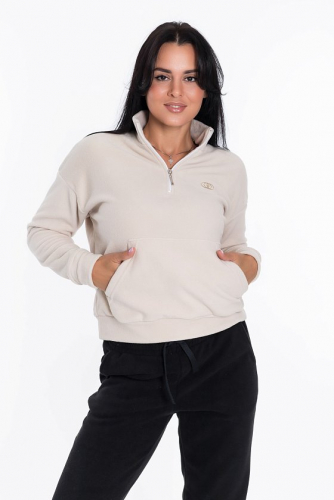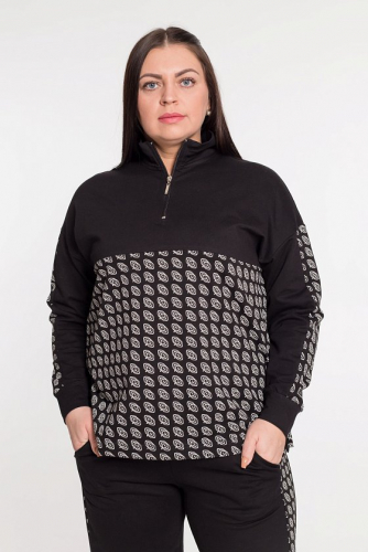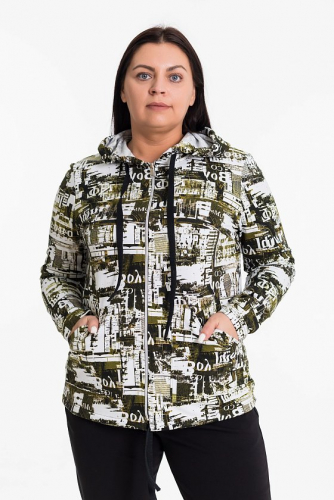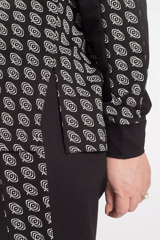 Спущенная пройма, рукав с отделочной полосой и притачной манжетой. Полочка и спинка с кокетками, воротник-стойка с застежкой на молнию, не доходящую до линии кокетки. По боковым швам разрезы