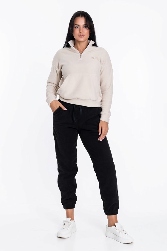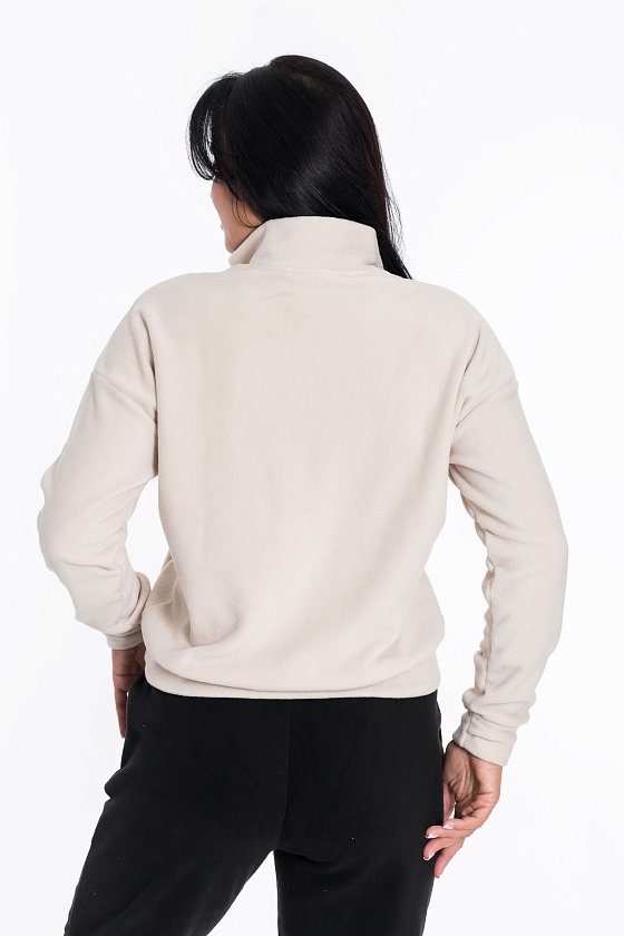Женская толстовка — отличный выбор для повседневной носки. Она изготовлена из мягкого и тёплого однотонного флиса цвета экрю, который обеспечивает комфорт в прохладную погоду.