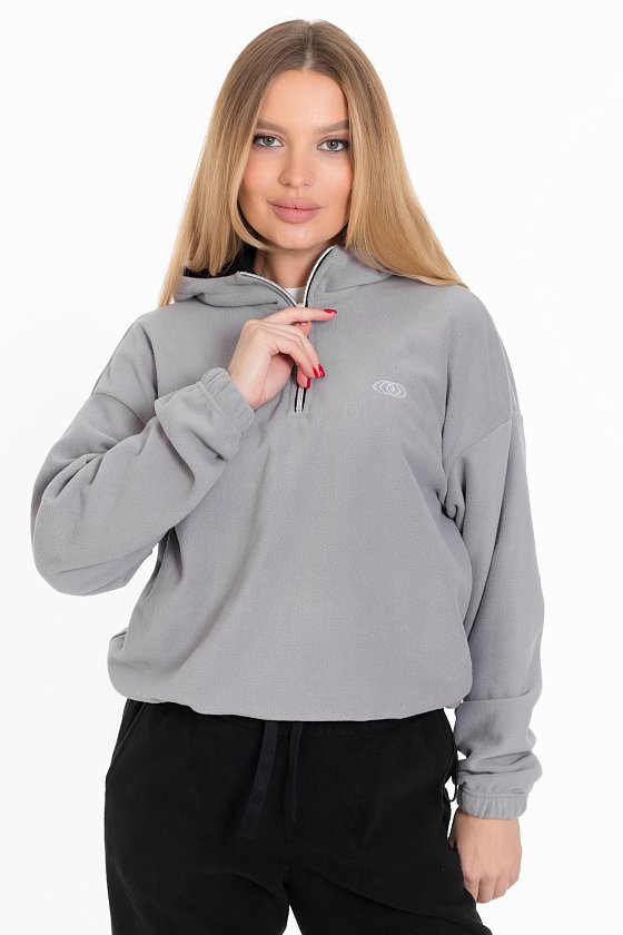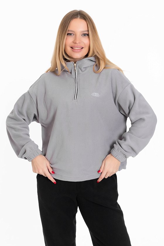 Женская толстовка из мягкого и тёплого однотонного серого флиса, который обеспечивает комфорт в прохладную погоду.