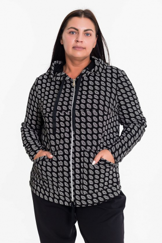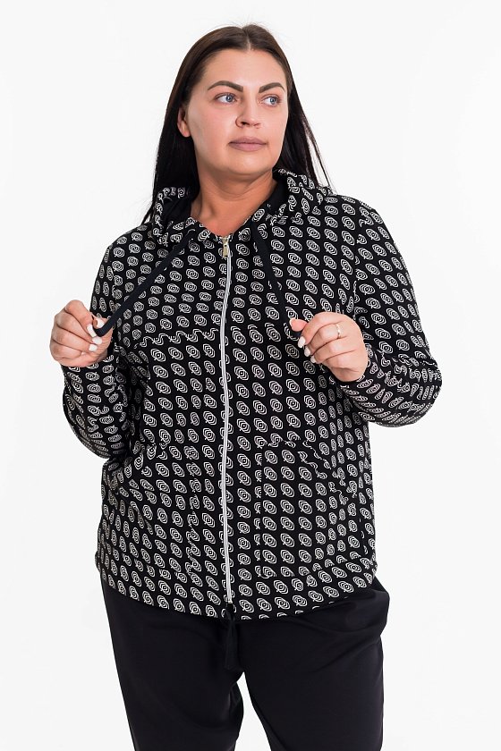 Женская толстовка из футерного полотна — отличный выбор для повседневной носки. Толстовка имеет удобный капюшон и центральную застёжку на молнию. Ширина капюшона и низ толстовки регулируются при помощи шнура. В накладные карманы удобно поместить необходимые мелочи.